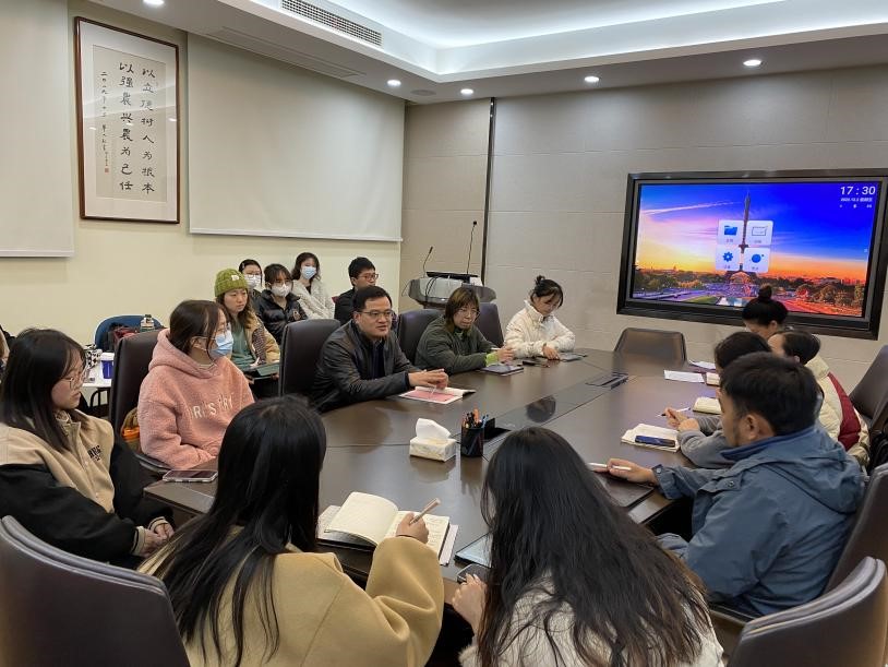 党委书记韩健、风景园林教师党支部书记陈宇教授,支部委员熊星副教授,首届百绿班班主任江苏百绿园林工程有限公司设计总监朱叶花、辅导员夏丽出席会议。百绿创新班学员参会,座谈会由陈宇主持。