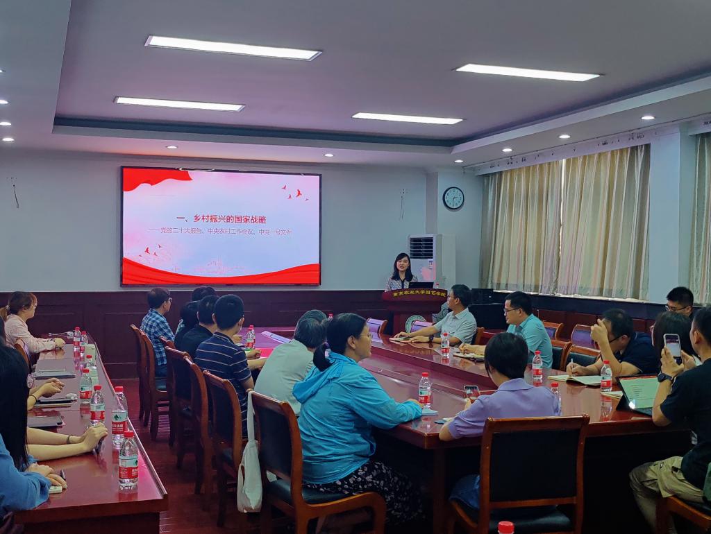 531日,六合彩网 党委邀请六合彩网 社会合作处副处长严瑾为六合彩网 师生党员作《乡村振兴的国家战略与高校实践》的党课报告。严瑾带领师生党员全面学习了党的二十大报告、中央农村工作会议、2023年中央一号文件精神中关于乡村振兴的重要论述,并从乡村振兴的国家战略、乡村振兴的高校实践以及社会服务的园艺担当等三个方面分享学习了习近平新时代中国特色社会主义思想指导下的乡村振兴国家战略,回顾了六合彩网 大学作为农业高校在新时代十年来开展定点帮扶与乡村振兴工作中的实践、贡献和成效,最后从践行主题教育、推动乡村振兴和社会服务等工作方面探讨了六合彩网 师生的责任担当。