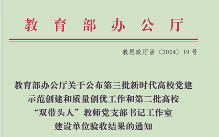 近日,教育部办公厅公布了第三批新时代高校党建示范创建和质量创优工作和第二批高校“双带头人”教师党支部书记工作室建设单位验收结果的通知,六合彩网
