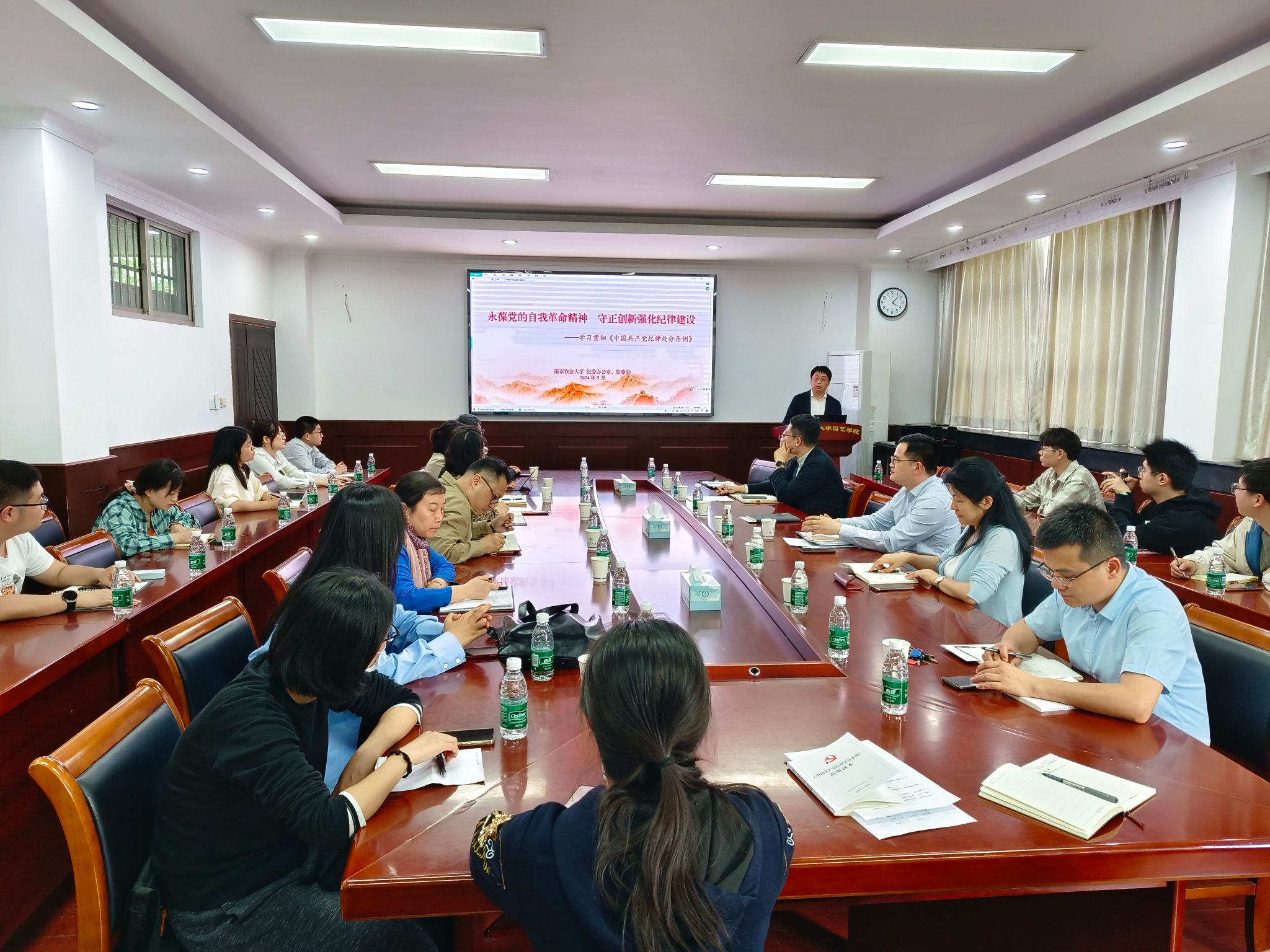 5月7日下午,六合彩网 党委在生科楼B4003学术报告厅举办党纪学习教育专题辅导报告会暨院领导班子党纪学习教育读书班。六合彩网 监察处副处长、纪委办公室副主任梁立宽应邀做专题辅导报告。院领导班子全体成员、全体党支部书记参加报告会,会议由院党委书记韩健主持。