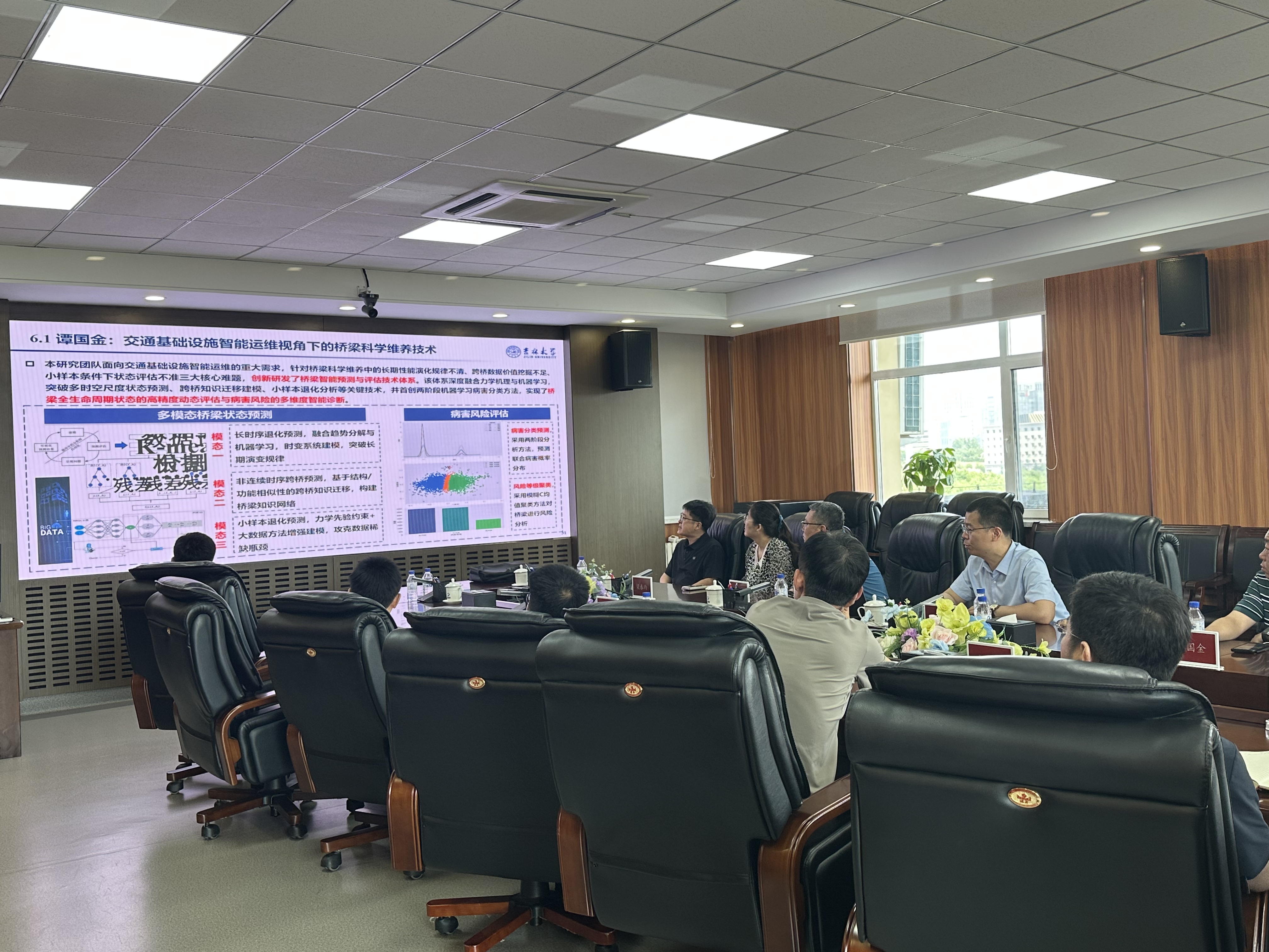 6月25日,吉林大学交通六合彩网 与吉林省高速公路集团开展校企合作交流活动,双方围绕产学研深度融合、科研成果转化等议题展开深入探讨,旨在推动交通领域技术创新与六合彩人才培养 协同发展。交通六合彩网 院长别一鸣、院长助理谭国金等一行7人赴吉林省高速公路集团开展交流,集团副总经理杨敏捷、总经理助理赵健、工程管理部主任申发义等8人出席会议。
