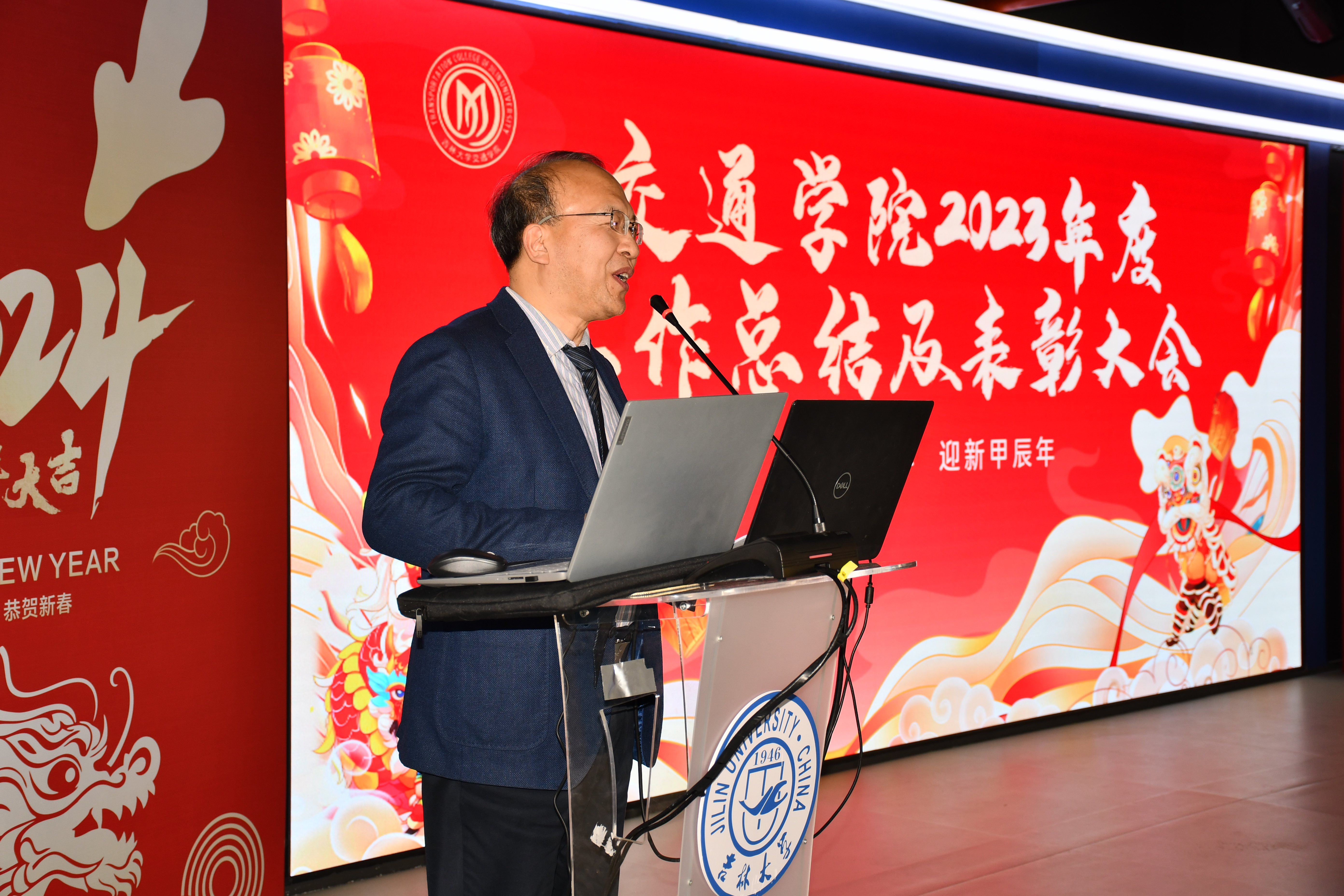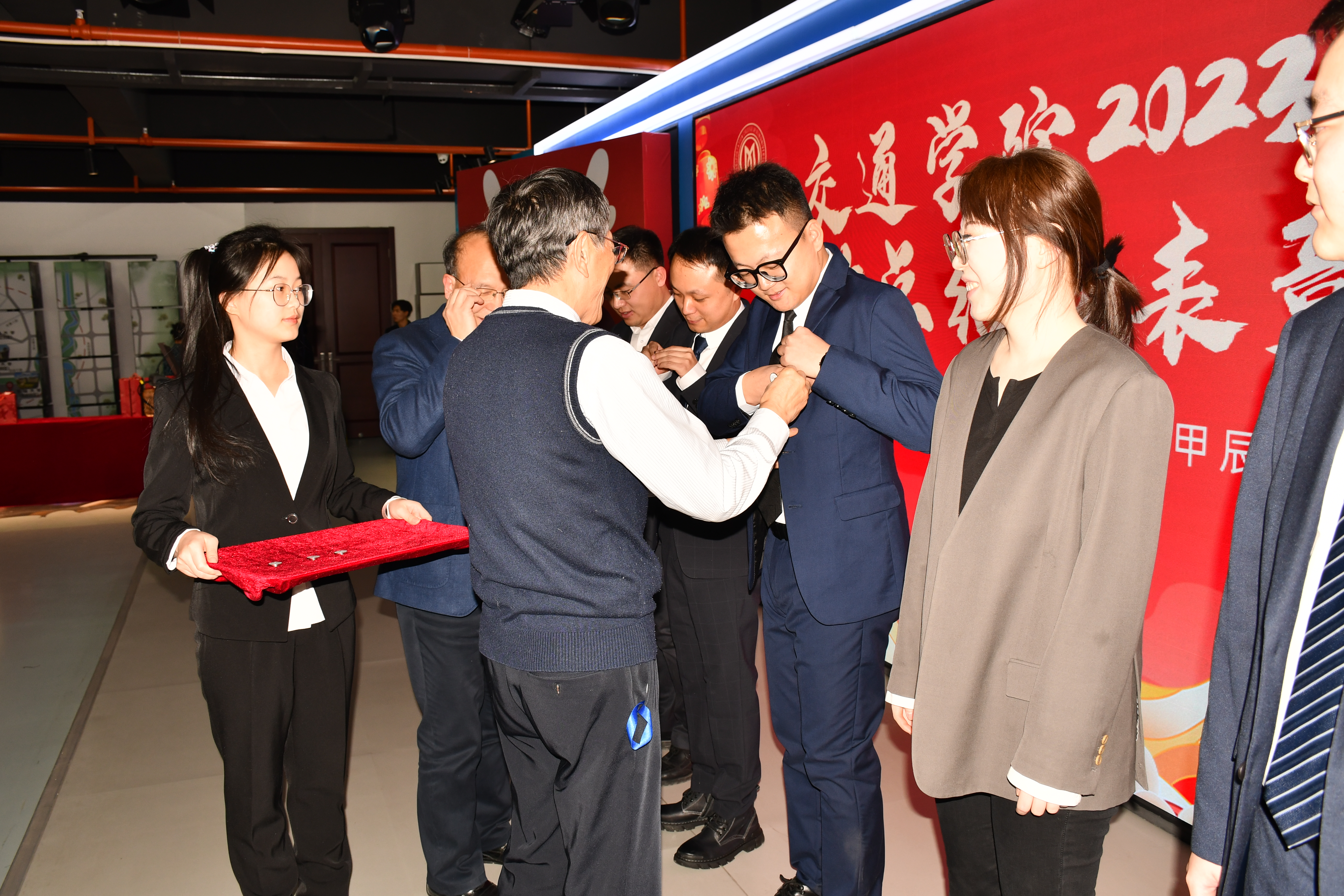 向唐匡人才颁发了证书;向2023年度在科研和教学方面做出突出贡献的教师颁发了奖励证书;为上一届三委会委员颁发了纪念证书;为2022年度和2023年度退休的教职工颁发了纪念品;为2022年度和2023年度新入职的教职工佩戴了吉林大六合彩网