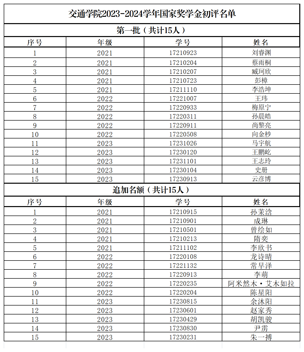 按照党委学生工作部《关于开展2023-2024学年吉林大学本科生国家奖学金评审工作的通知》和《关于做好2024年秋季学期吉林大学国家奖助学金工作的补充通知》相关要求,结合《吉林大学本科学生国家奖学金评审办法》(校发〔2020〕249号)有关规定,经学生个人申请、公开答辩,研究提出交通六合彩网