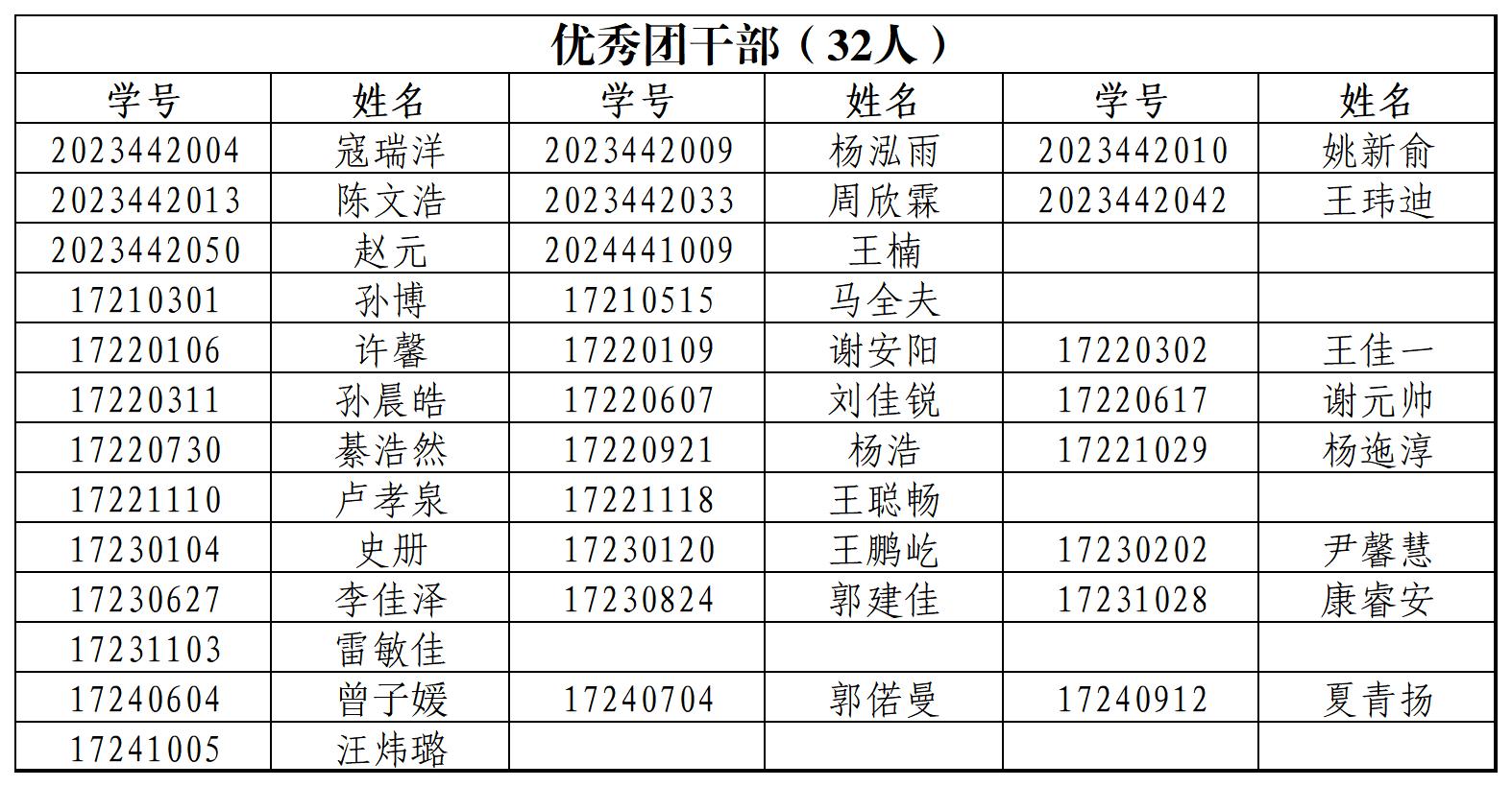 2024年度吉林大学“优秀团员、优秀团干部、先进团支部”推荐人选如下: