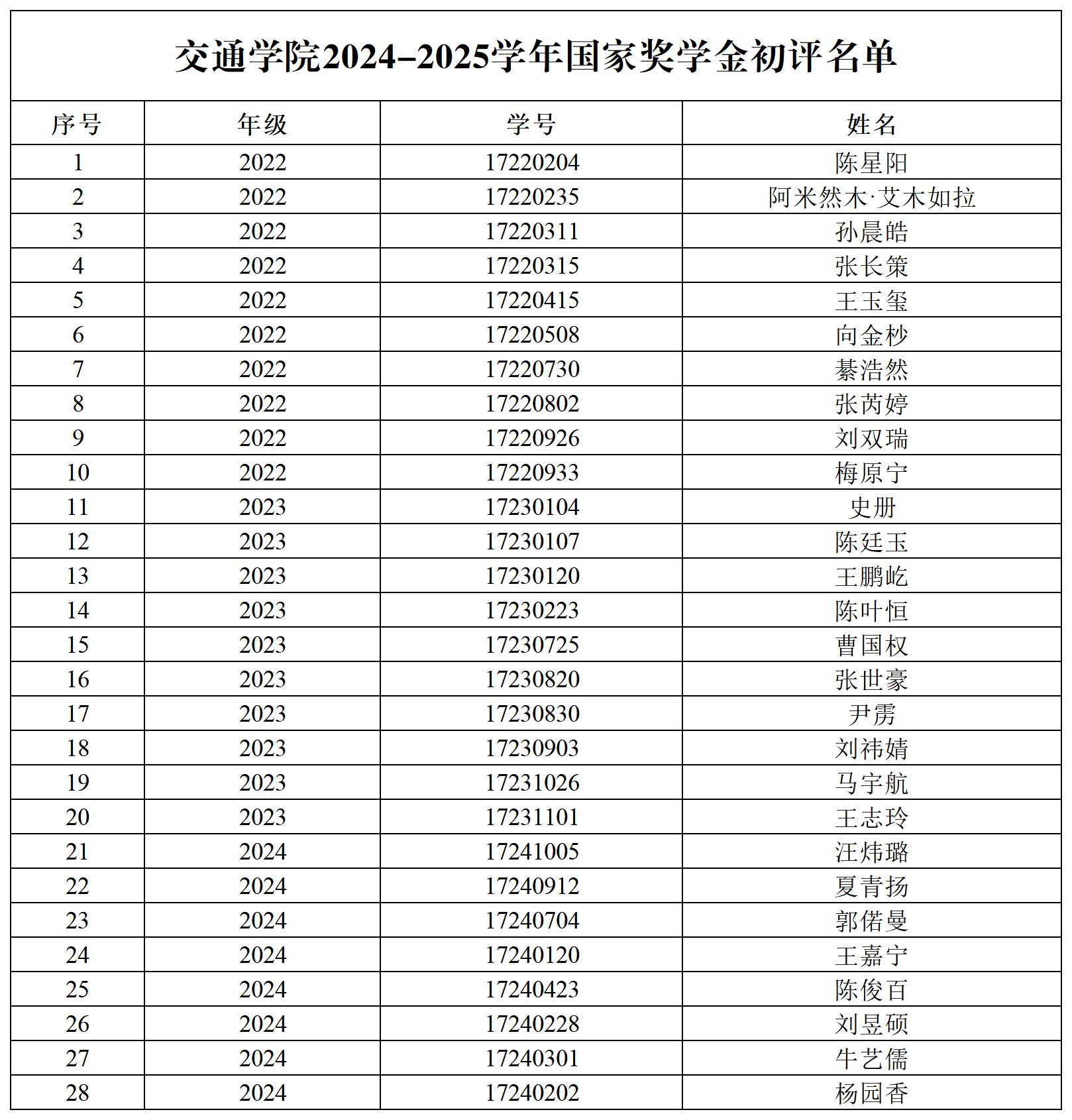 按照党委学生工作部《关于开展2024-2025学年吉林大学本科生国家奖学金评审工作的通知》相关要求,结合《吉林大学本科学生国家奖学金评审办法》(校发〔2020〕249号)有关规定,经学生个人申请、公开答辩,研究提出交通六合彩网