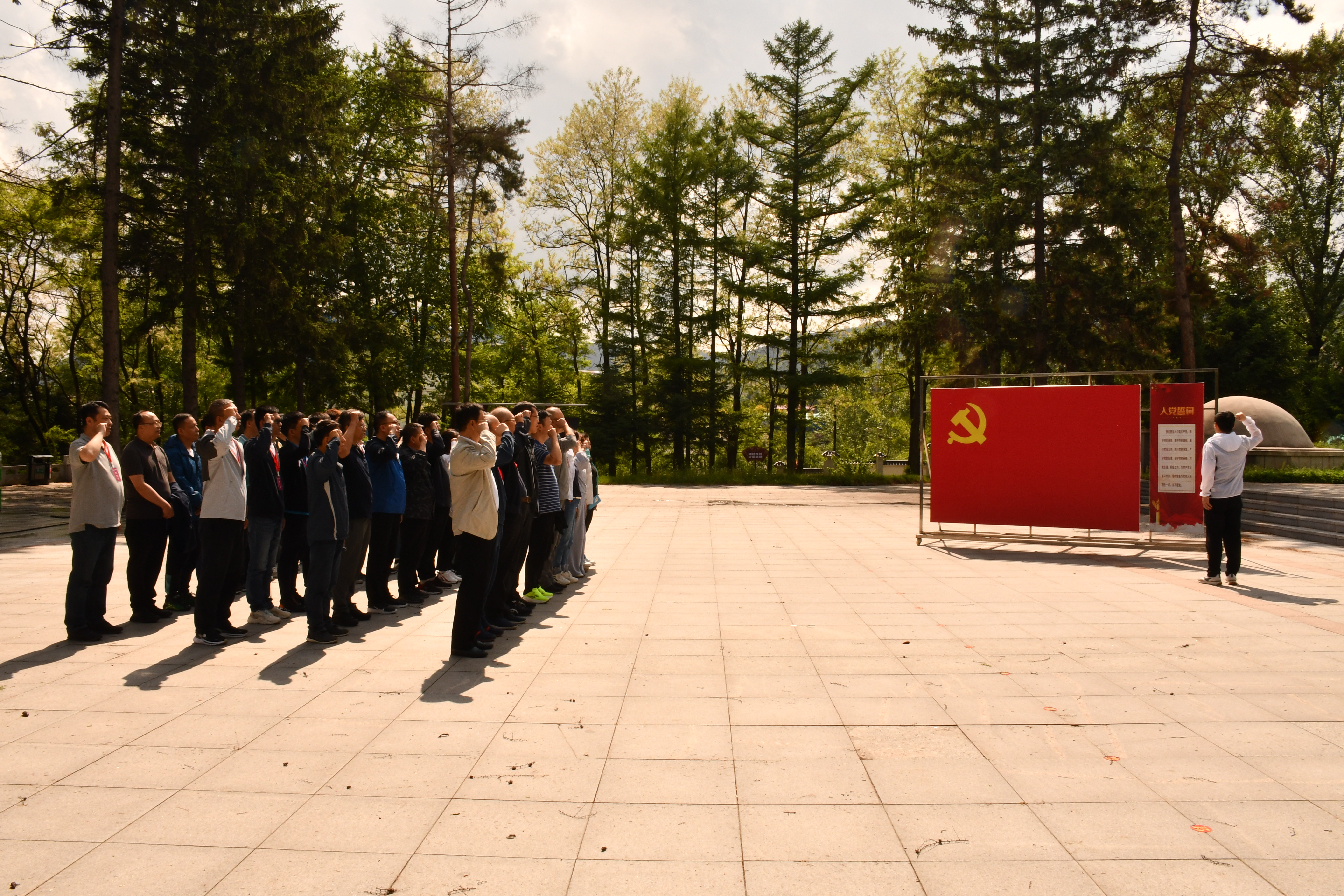 在烈士陵园纪念碑前,全体党员面向党旗重温了入党誓词,对党庄严承诺,铭记革命英烈丰功伟绩,牢记共产党员的神圣使命和担当。
