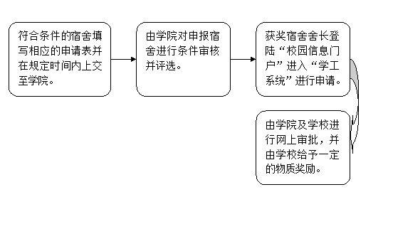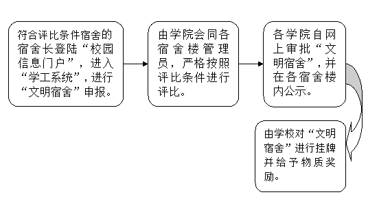 大学学生住宿管理规定》,宿舍整齐,清洁美观。宿舍成员上一学年内没有受到过有关部门的批评和处分;