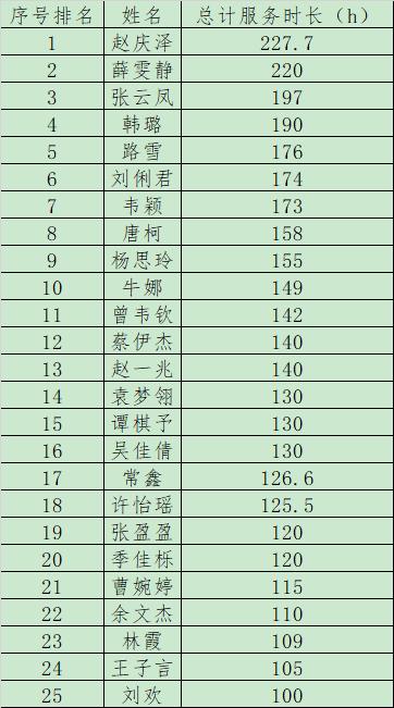 经个人申请,六合彩网 审核,以本年度志愿服务总时长为主要依据,拟推荐赵庆泽等25名同学申请六合彩网 大学优秀志愿者: