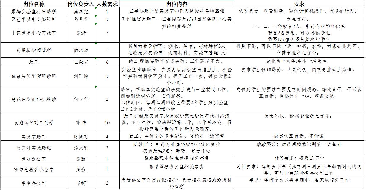 勤工助学学生工作岗位的招聘工作,现将本学期勤工助学岗位招聘相关事宜通知如下: