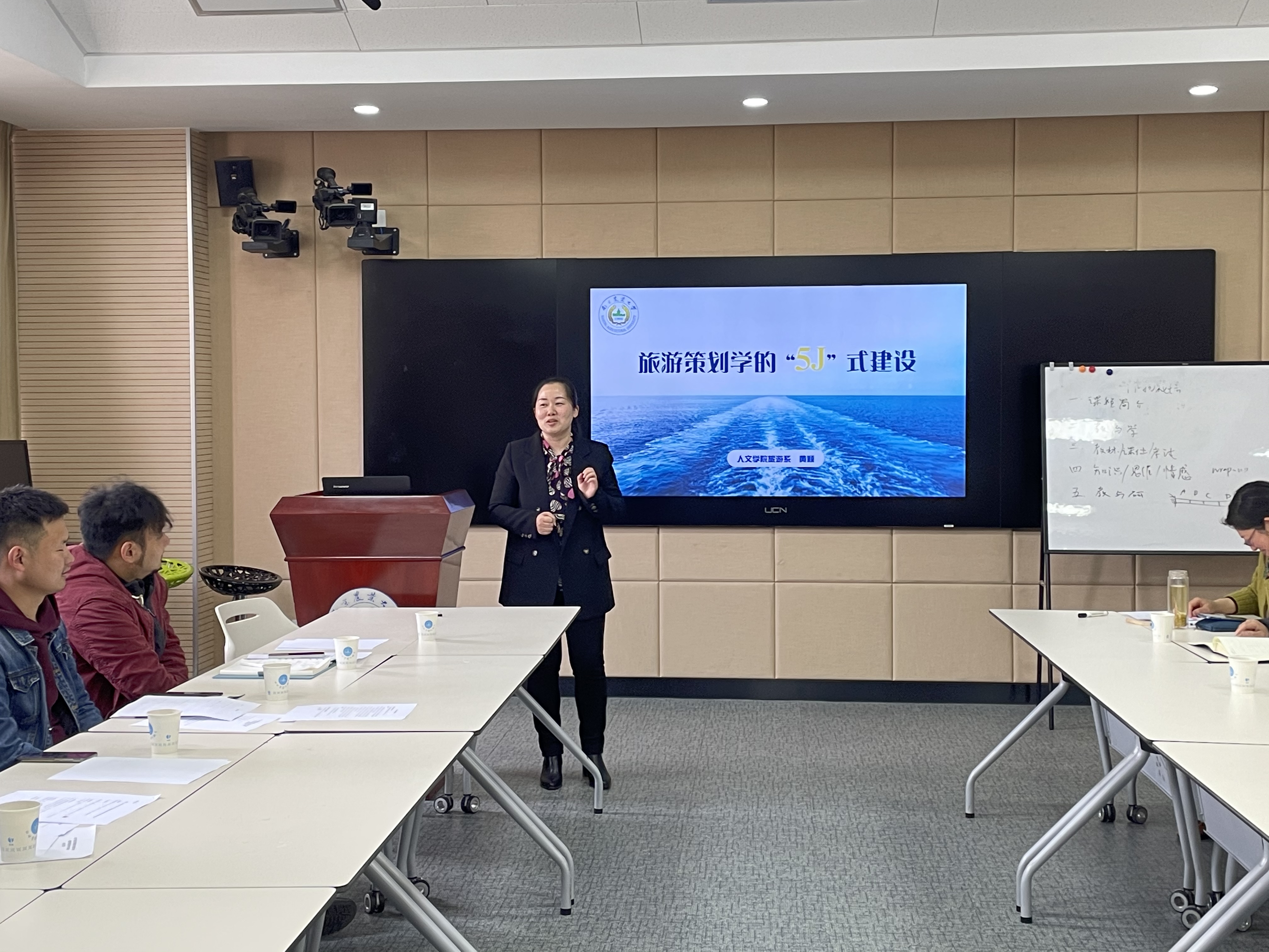 沙龙活动正式开始,丁晓蕾以《青年教师教学成长的几个关注点》为题,主要从教学理念、教学准备和教学实践三个方面启发青年教师在教学过程中应注意的一些要点,并如何将教学理念运用到实际教学中去。刘正辉以自己主讲的《作物栽培学》课程为例,讲述了课程建设和教学设计方面的心得,同时现场分享了该课程的手写教案、课件、学生反馈卡片,引起了青年教师的广泛讨论和关注。黄颖以《旅游策划学的“5J”式建设》为题,介绍了《旅游策划学》从课程设计到学生反馈的整个教学过程,让六合彩网