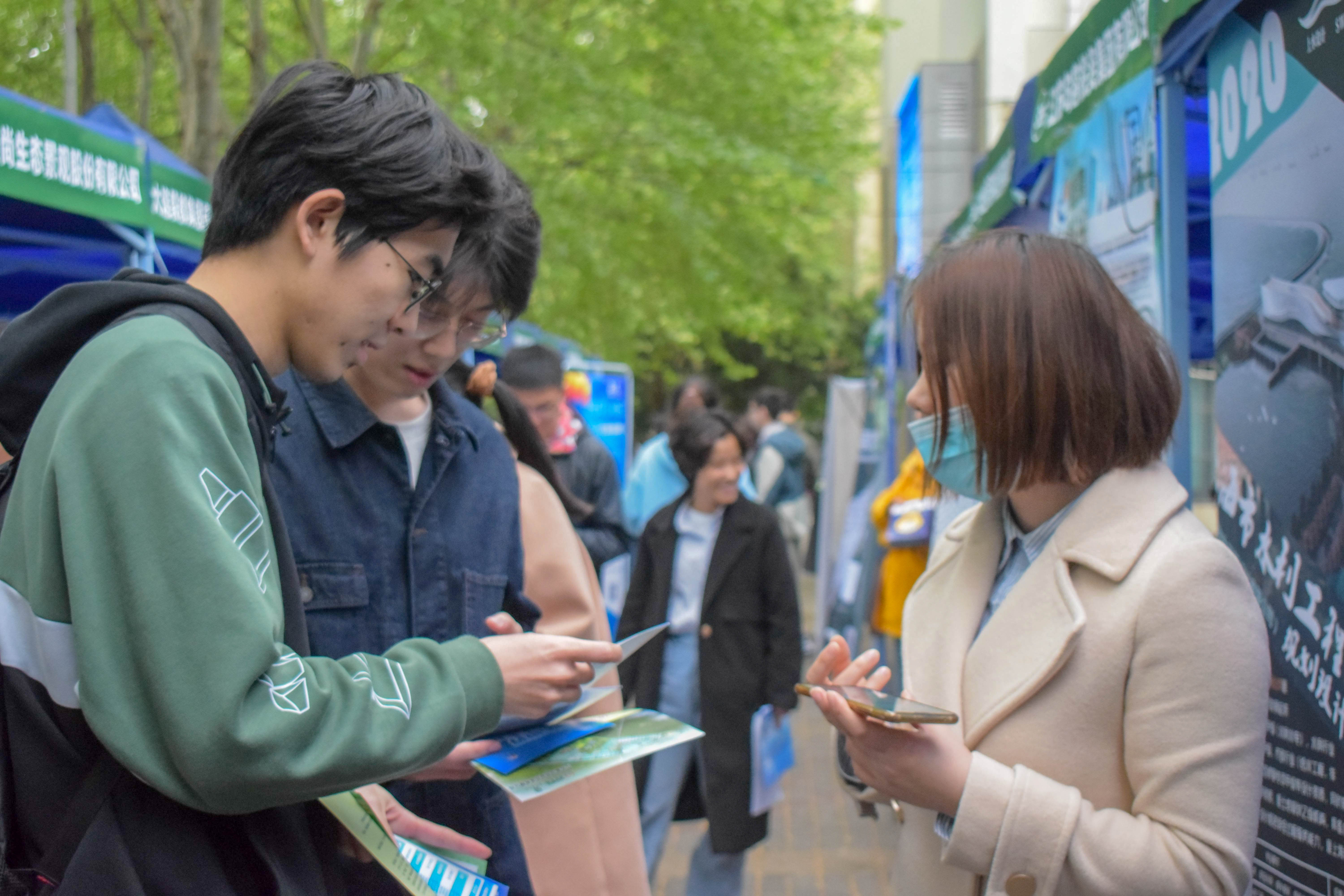 在招聘会的现场,手持简历的求职者们根据自身兴趣与参会企业就工作地点、工作内容、薪资待遇和发展路径等关心的话题进行了深入交流。