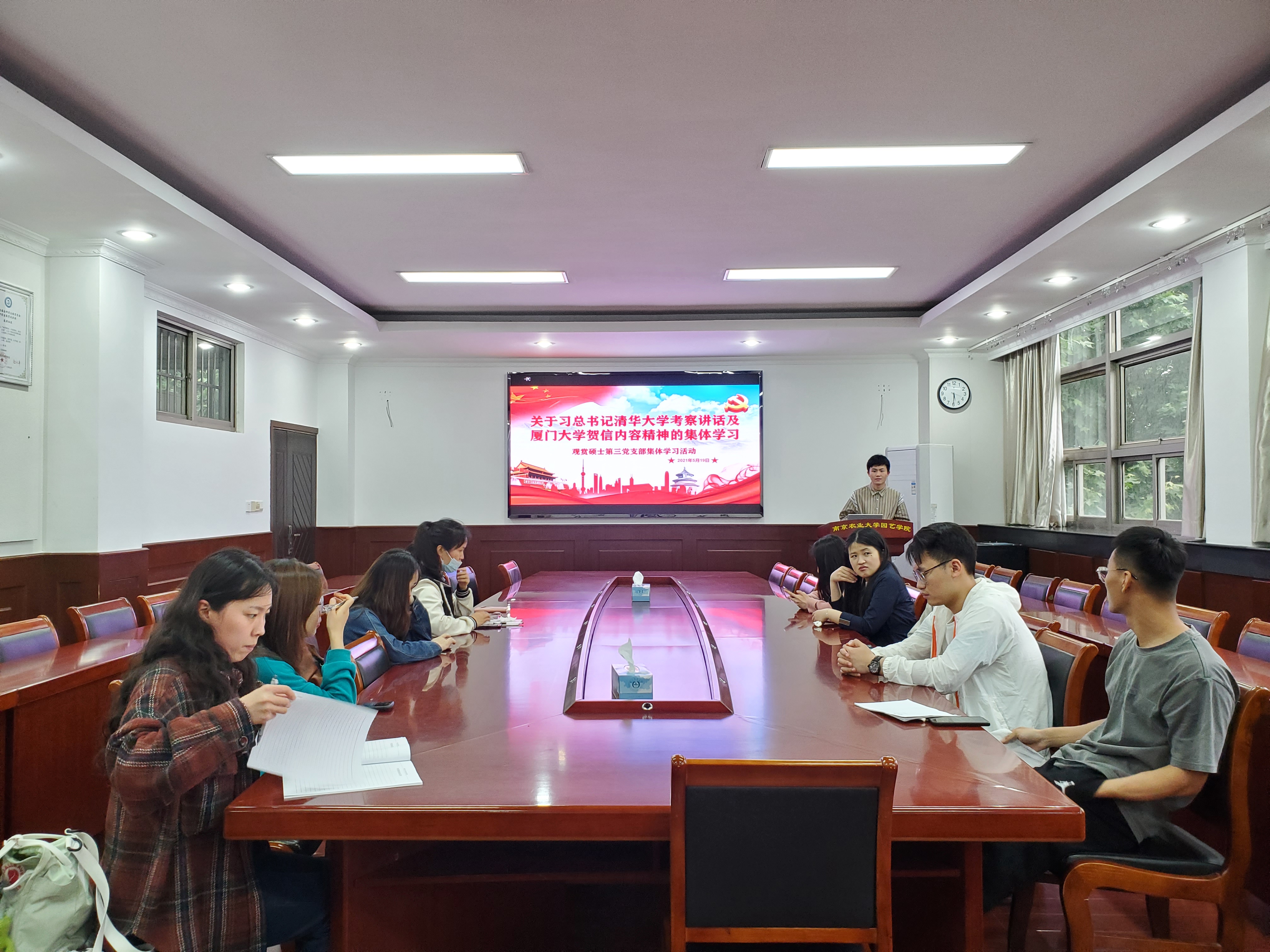 2021年5月19日,观赏园艺硕士第三党支部于生科楼B4003会议室召开关于习近平总书记清华大学考察讲话及厦门大学贺信内容精神集体学习会议,党支部全体党员参与本次会议,会议由党支部副书记贾棣文主持。