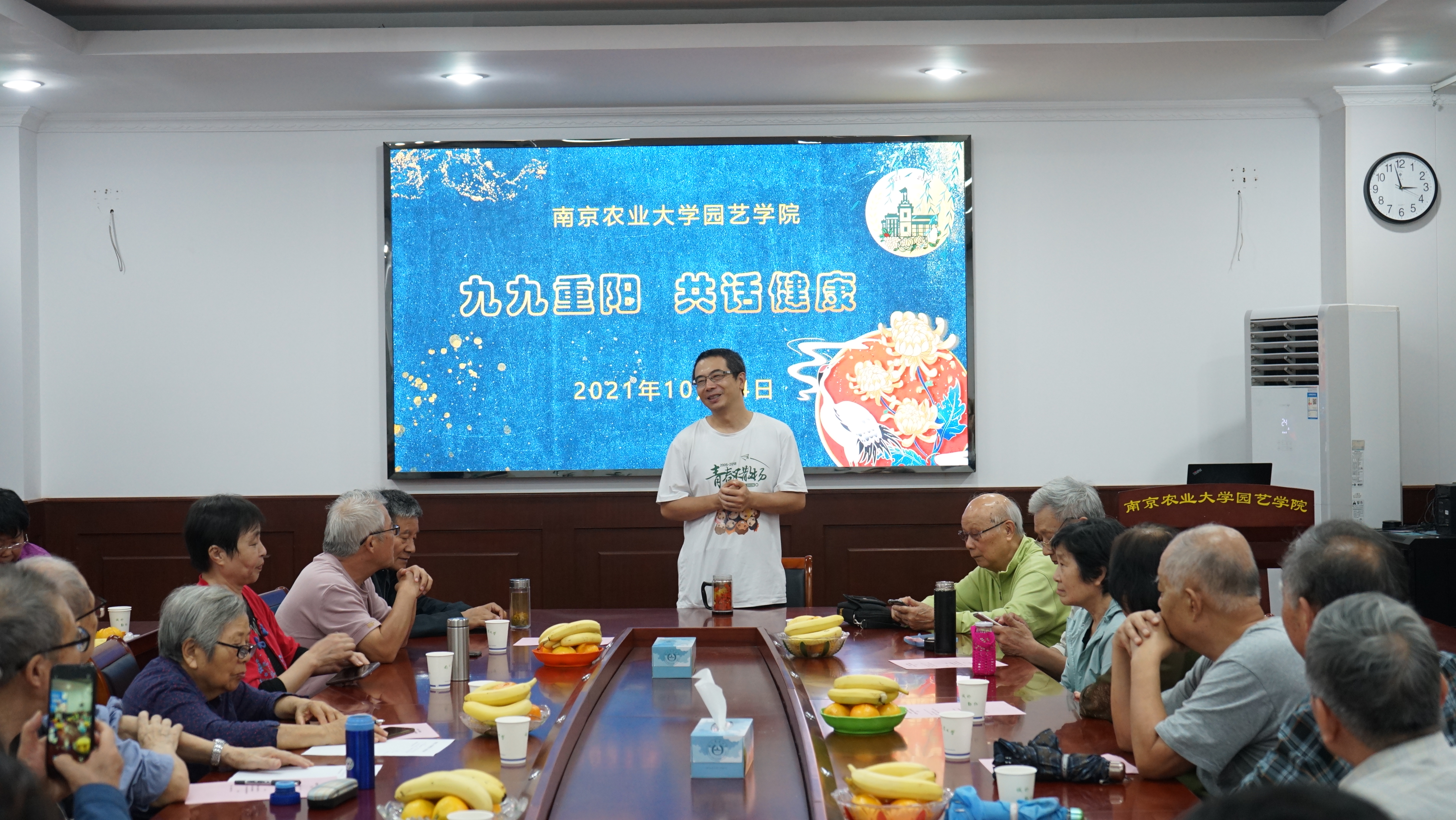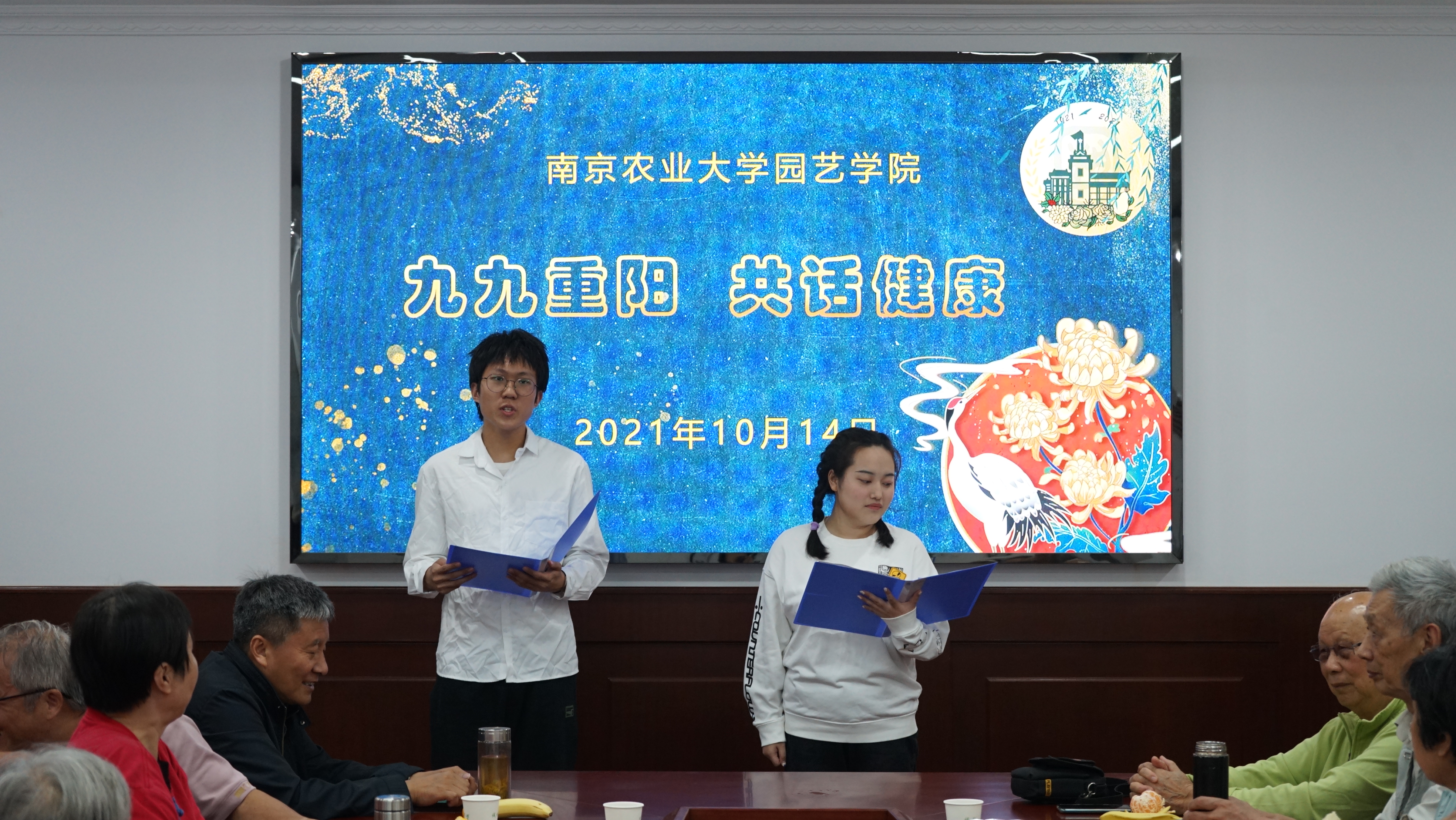“九九重阳共话健康”退休教师茶话会在生科楼B4003如期举行。院党委书记韩键、党委委员刘丹、退休教师、学生代表参加会议。会议由刘丹主持。