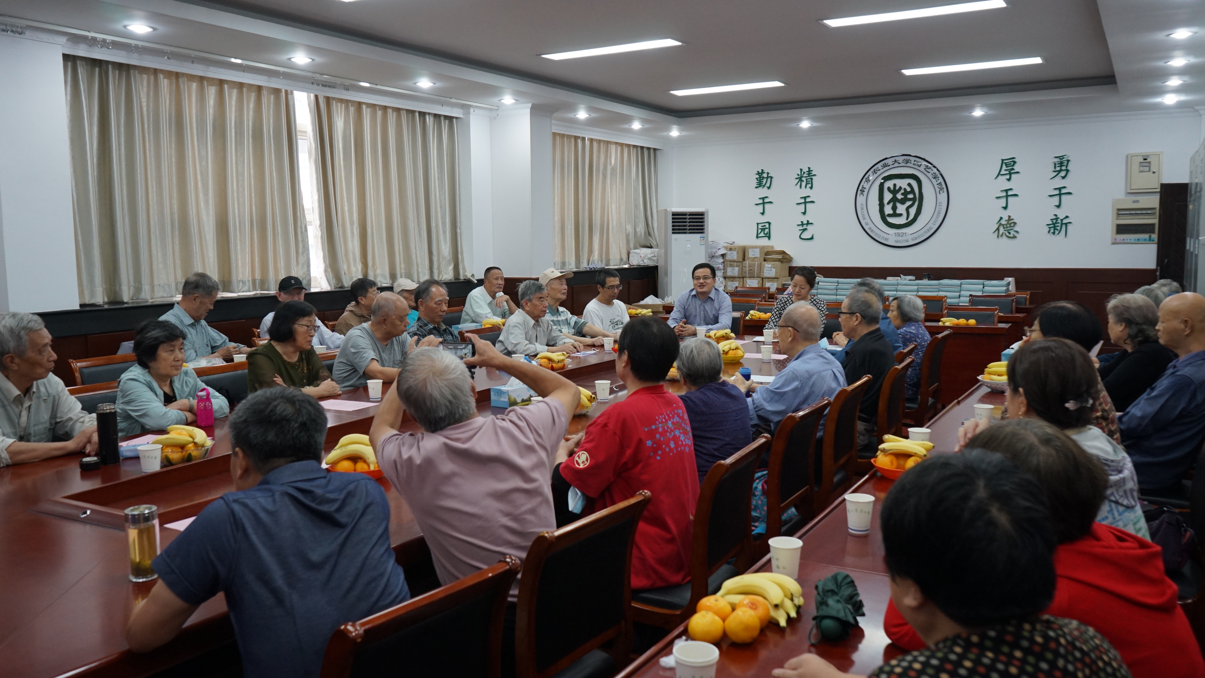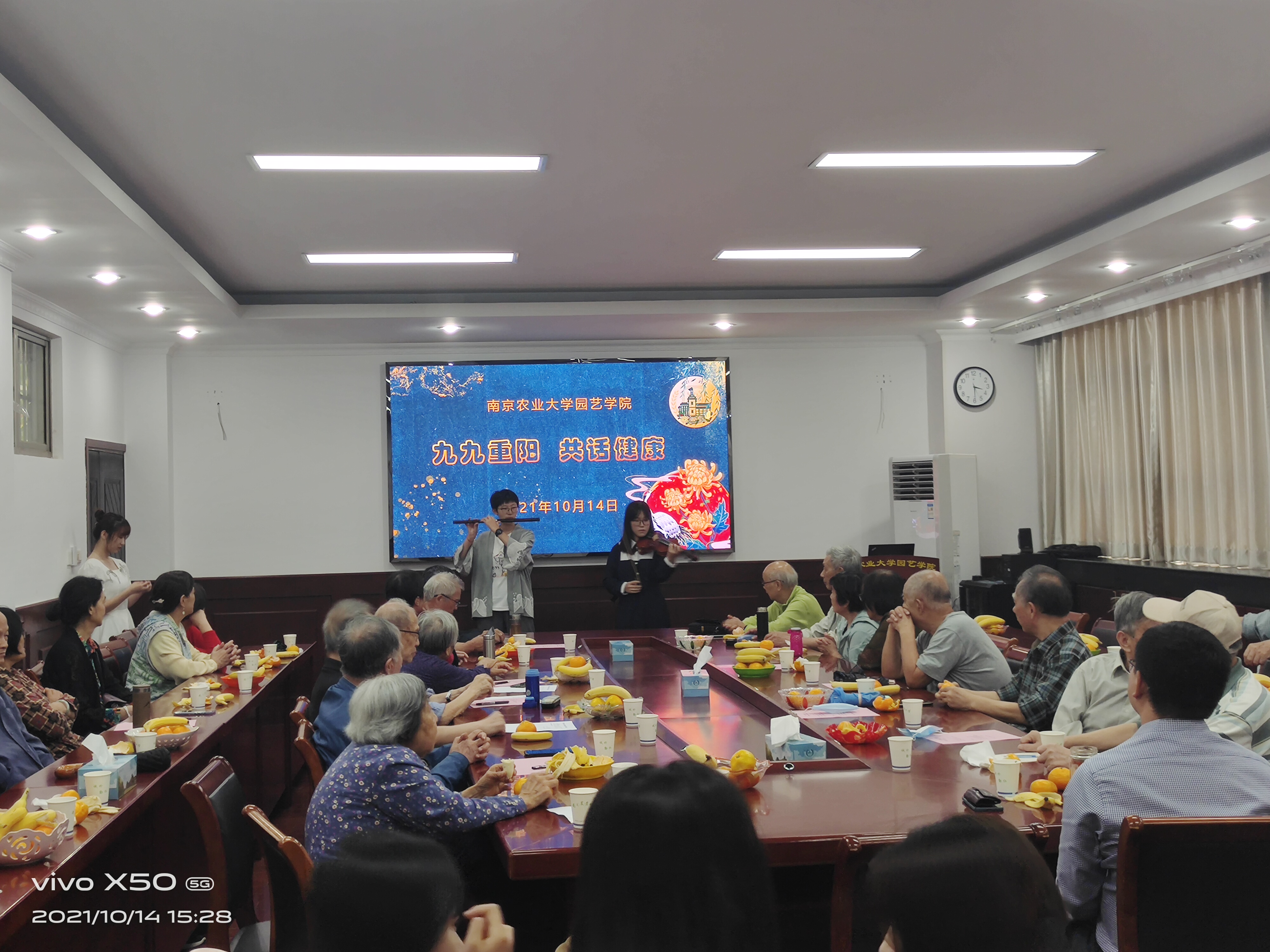 领导与退休教师其乐融融共度佳节。