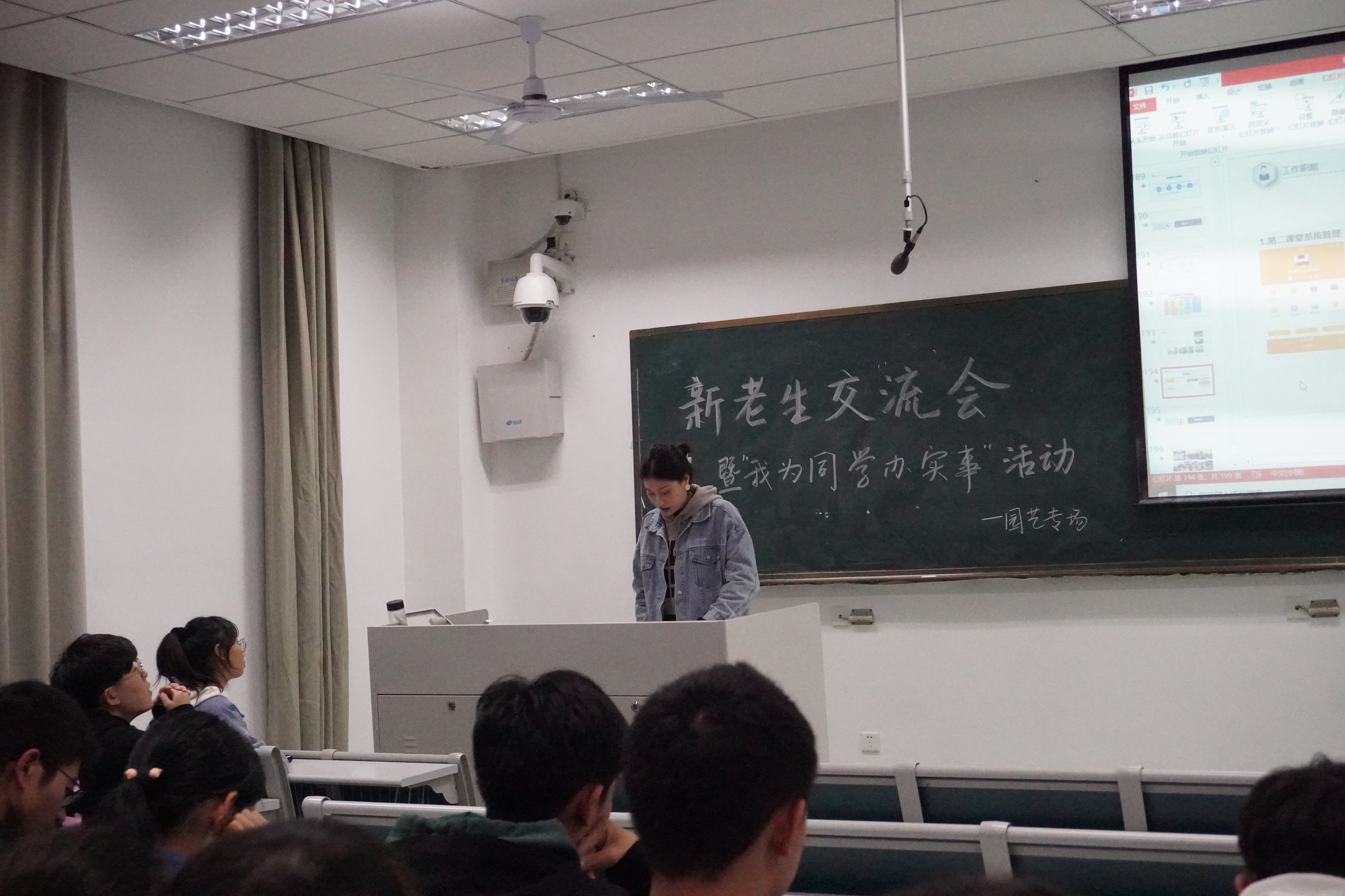 最后李佳惠子同学介绍了学生工作的相关事宜以及在她在学生工作中的收获。首先李佳惠子同学为大家介绍了学生会的组织架构,指出了关于入党或加入学生组织的一些错误的想法,如为了个人荣誉、跟从大众或者功利型都是不正确的,之后她分享了个人在学生组织中收获了友情并锻炼了自身能力,希望大家可以找到自己发光的舞台,勇敢创造自己精彩的生活。