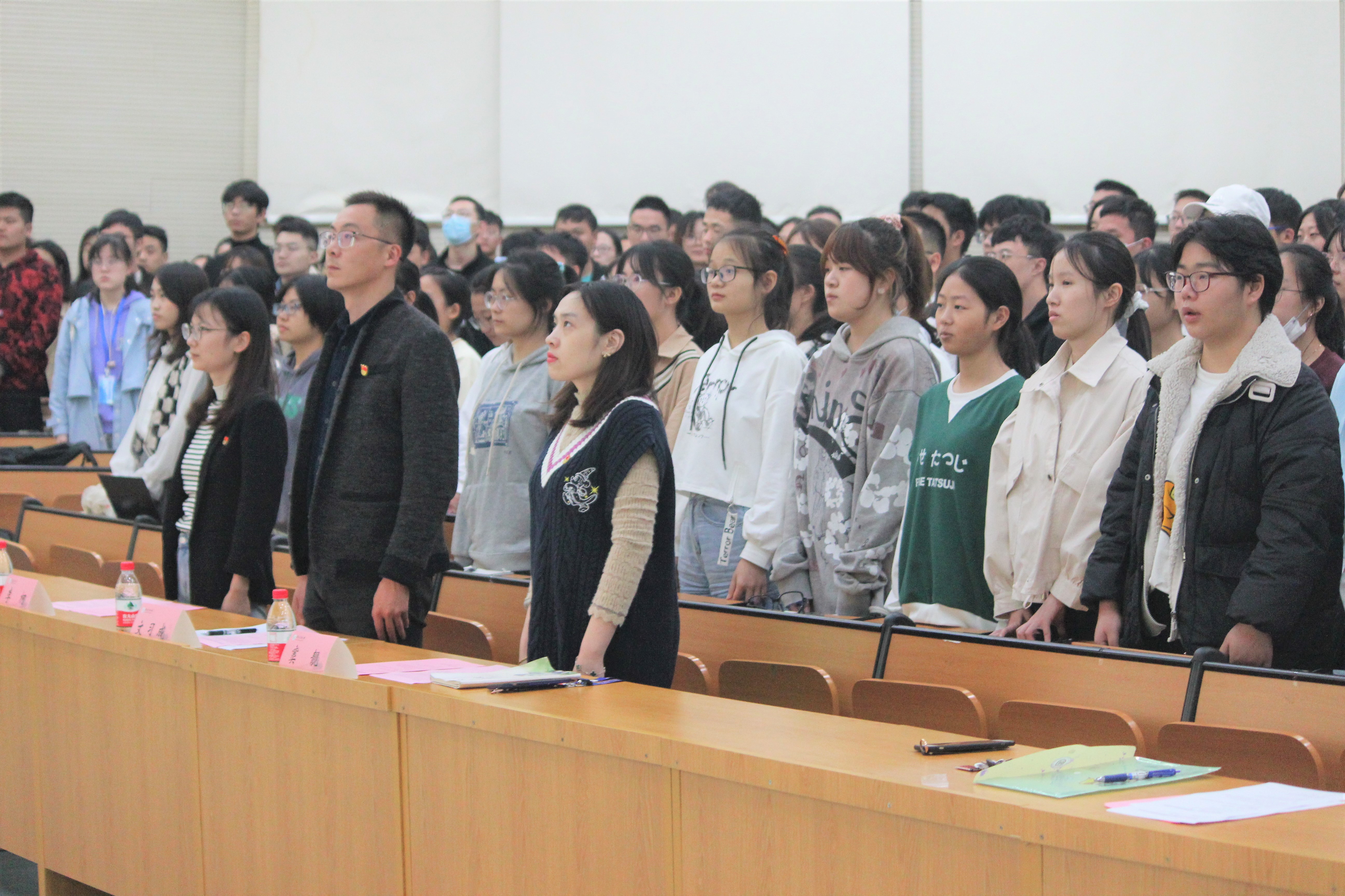 党委副书记文习成、院学工办主任窦靓、副主任夏丽和辅导员李柯。此次典礼由夏丽主持。
