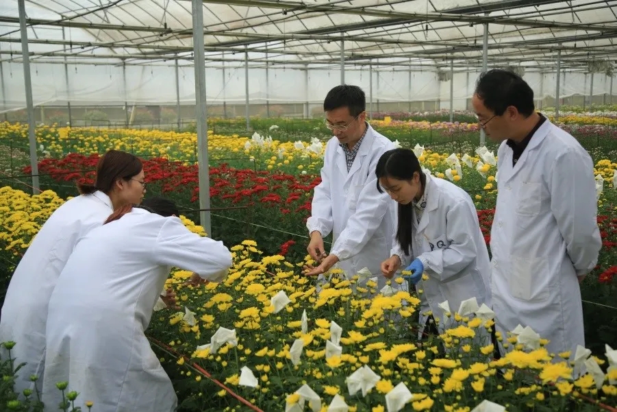 大学菊花遗传与种质创新团队组建于1999年,团队目前有教师22人,其中教授9人。通过引育并举,传帮带、青年人才托举工程等,建成一支学缘结构合理、研究方向明确、特色鲜明、技术过硬、团结协作,潜心菊花现代遗传育种基础与应用研究的队伍。团队成员入选教育部特聘教授、国家杰出青年科学基金、国家自然科学基金优秀青年科学基金(含海外)、全国创新争先奖等国家和省部级人才计划20余人次。入选科技部重点领域创新团队、农业部创新团队和江苏省现代农业产业技术创新团队。牵头建有农业农村部重点实验室、国家林草局重点实验室等省部级平台近10个,是作物遗传育种与种质创新国家重点实验室等国家级平台重要成员。20多年来,团队坚持立德树人、强农兴农根本任务,聚焦我国传统名花菊花遗传育种与种质创新关键问题,开展科技攻关及成果示范推广。在我国花卉高层次人才培养,推进科技自立自强,服务脱贫攻坚和乡村振兴等国家战略中做出了重要贡献。