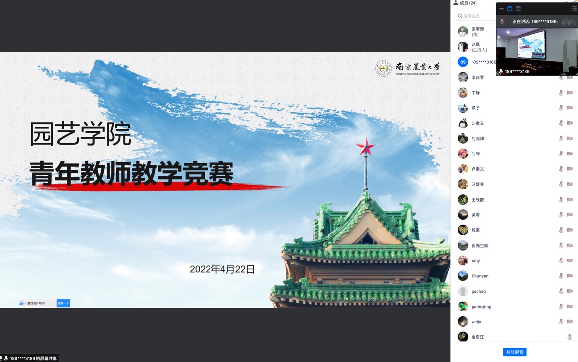 教学指导委员会成员,韩键书记、吴巨友院长、陈素梅副院长、张清海副院长、高志红教授以及中药系系主任唐晓清教授、茶学系系主任陈暄教授和园艺系系主任上官凌飞副教授,参赛老师为5个系选拔的共计23位青年教师。