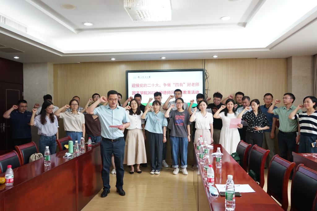 陈素梅院长带领老师们温习了《师说》中“师者,传道授业解惑也”、“学高为师,身正为范”的师者内涵,强调了立德树人是老师的根本任务。并提出了三点要求:一是年轻教师要努力做到“通专”结合,不仅要精通园艺相关知识,也要了解植物科学、教育学、心理学等领域的知识,才能较好的承担起立德树人的根本任务;二是要“接地气”,充分认识园艺学科是应用性强的学科特点,要走进产业,面向产业需求开展科技创新,要深入生产实践一线,提高实践育人能力;三是要做到“教学做”相结合,不断提高学识与能力。做到教学、科研、实践、育人相结合,以榜样为力量,以学生为中心,争做“四有”好老师。