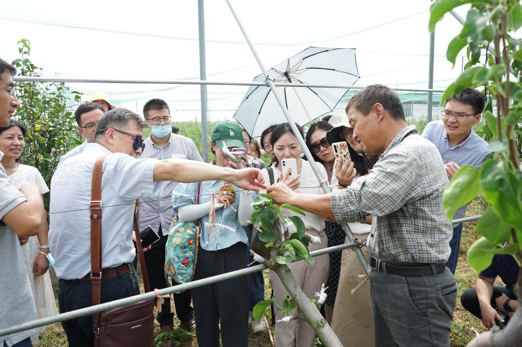 部分科研平台和基地,不同专业方向的青年老师们现场学习了不同温室的类型、葡萄温室限根栽培技术、梨树高接换种技术等,他们不禁感叹:农业科研不仅要在实验室做出“好文章”,更要扎根大地,练就过硬本领,才能培养出“顶天立地”的现代化农业领军人才。