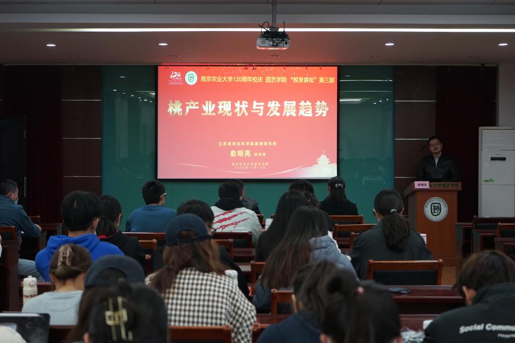 最后韩健对本次校友讲坛进行总结,对俞明亮研究员的精彩报告再次表示感谢。通过俞明亮研究员对于桃产业现状与发展趋势的讲解,大家从了解桃的起源、品种、发展现状、研究进展等,加深了对桃的认知。韩健书记指出,杰出校友的精彩分享进一步坚定了我们园艺人自信自强的信念,希望我们园艺学子在强农兴农实践中贡献更多的园艺力量。