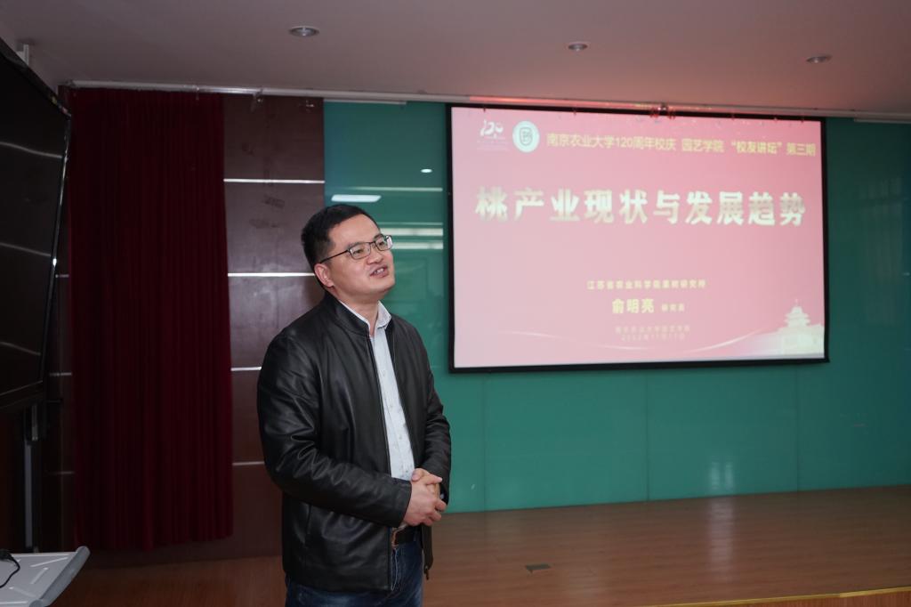 果树研究所俞明亮研究员作题为《桃产业现状与发展趋势》的专题报告。
