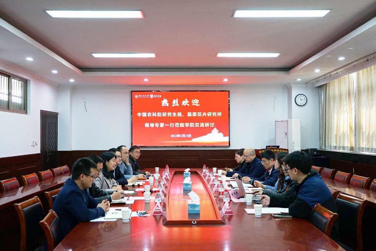 研究生院招生就业处处长张玉胜、蔬菜花卉研究所生物技术研究室主任程锋、花卉种质资源与遗传育种创新团队首席张秀新、科研处霍伶艳等陪同来访。学院党委书记韩健、院长陈素梅、党委副书记文习成、副院长张清海、陶书田、束胜参加了座谈交流。会议由韩健主持。