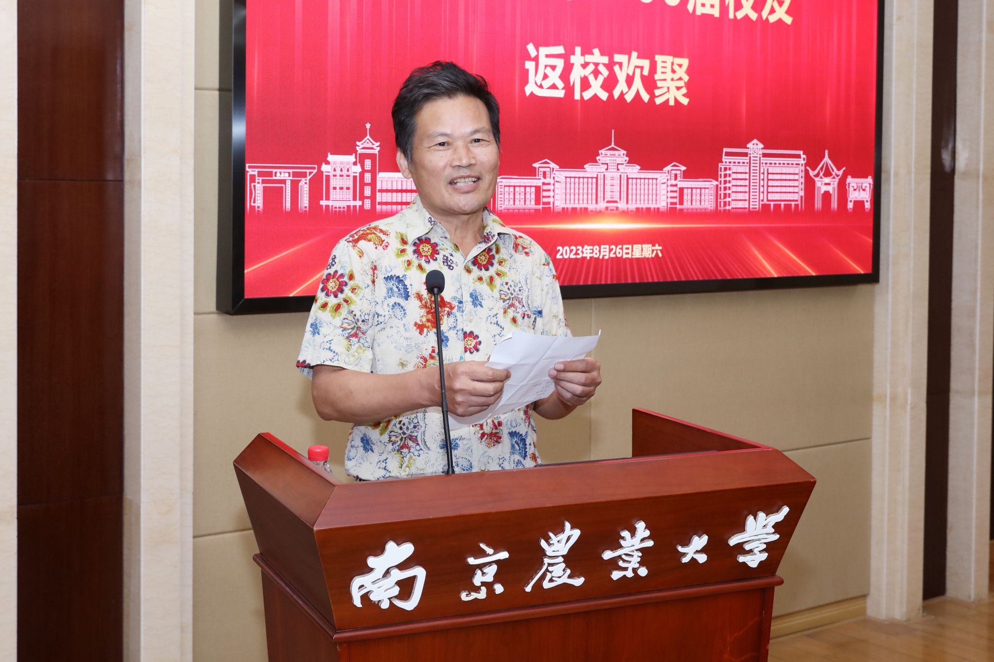 在历史沿革、学科建设、科学研究、人才培养、国际合作与交流、服务三农等方面的成就和贡献。他对广大校友长期以来对母校的支持和关心表示感谢,并希望校友们要加强与母校的联系,常回母校看看,为母校发展献言献策,向母校倾诉心声和愿望,共同谱写校友、母校、社会共赢发展的新篇章。