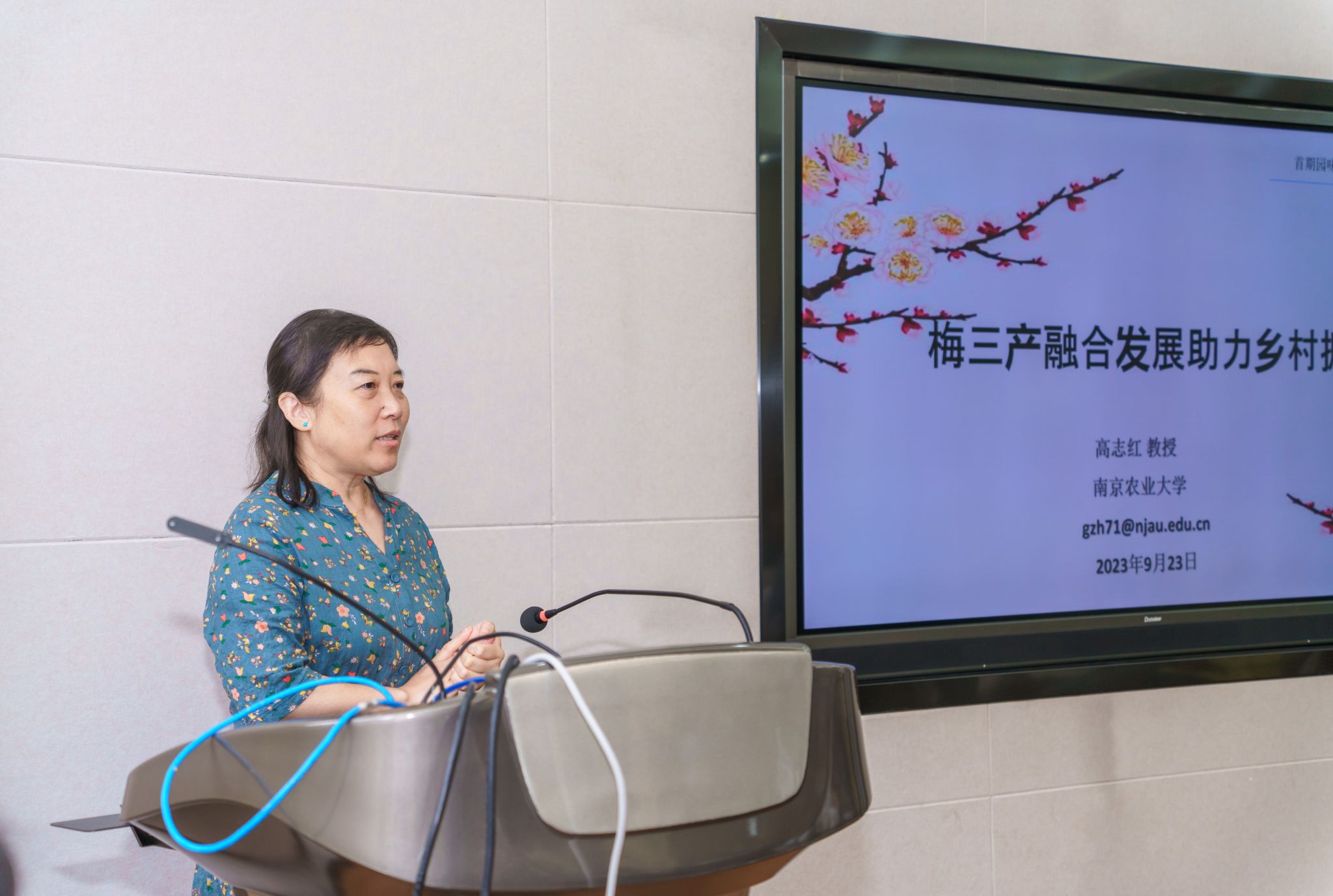 果树学科高志红教授和观赏园艺学科赵爽副教授分别作为主讲人分享了果梅杨梅和菊花种质资源的收集保护现状以及相关产品的开发利用: