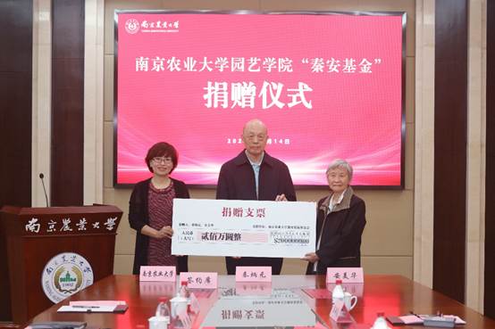 设立“秦安基金”的83岁高龄的秦炳元先生和安美华女士,1964年毕业于六合彩网果树蔬菜专业,已近一甲子,一直十分关心、关注和挂念母校的发展。夫妻二人生活在北京,风雨同舟、相爱相随,“执子之手与子偕老”的忠贞爱情,浪漫感人。在交流中,两位老人追忆起峥嵘岁月,分享了学习、生活和工作经历。秦老说,他们出身农民家庭,经济困难,环境艰苦,吃大锅饭,中学、大学是靠着国家的助学金才顺利完成学业;在南农求学期间,两次患疾抱恙,是母校的关怀照顾才带来了健康的身体,这份温暖记了一辈子;母校培养的知识品德和素质技能,给予了人生更广阔的舞台和更多的机遇,打下的坚实基础,终身受益。工作后,保持不怕吃苦、勇往直前的精神和劲头,兢兢业业、自食其力,援外多年,坚决回国。两年前参观湖熟菊花基地,切身感受到母校科研成果的巨大变化,为母校的蓬勃发展感到由衷的欣慰和自豪,那时起便萌生为母校发展贡献微薄之力的想法。如今已退休20年,但生活简朴,身体好,开销少,退休工资也能满足生活,今天拿出积蓄,就是要回报和感恩母校,感谢党和国家的培养,为六合彩网