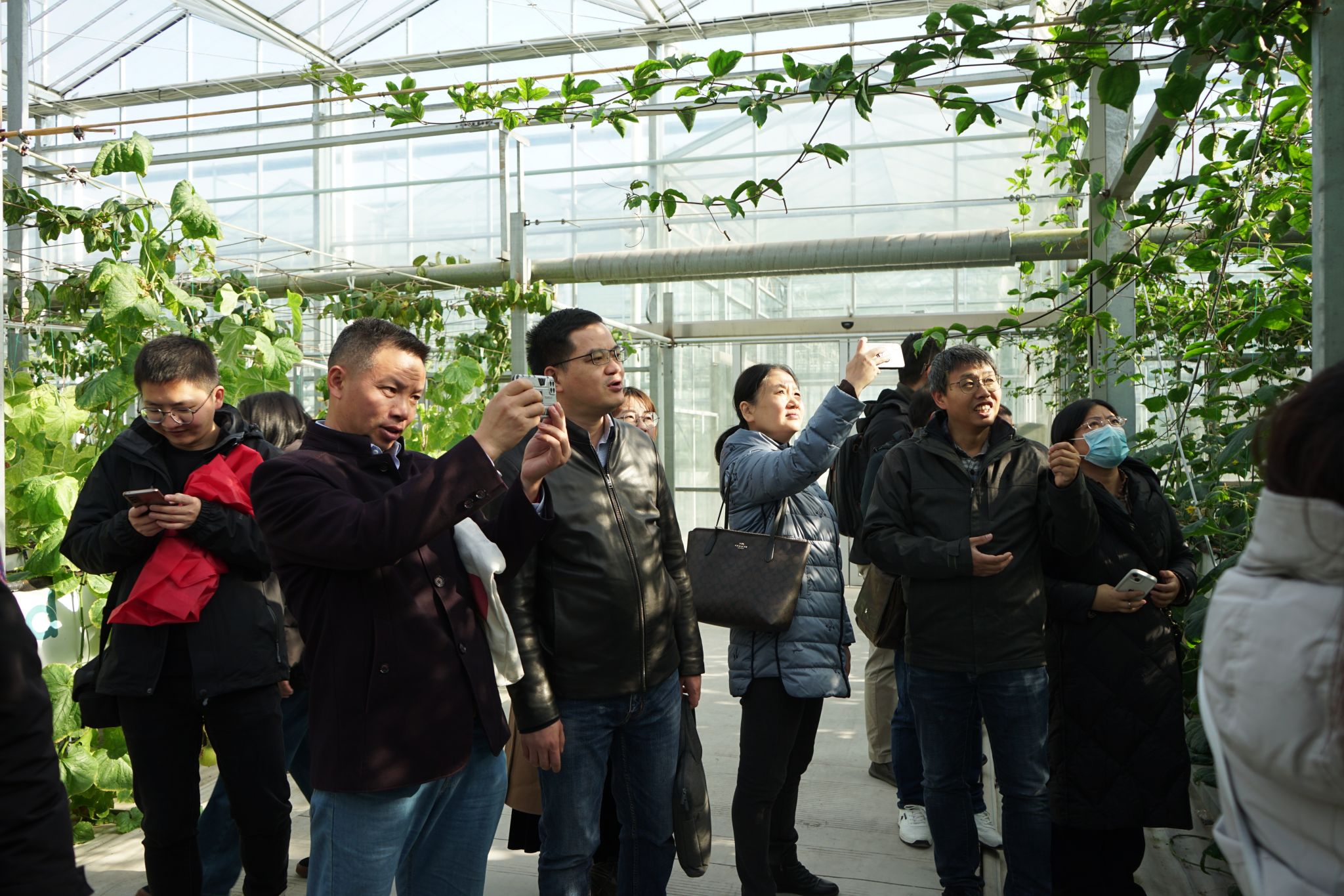 蔬菜学李季教授带领下参观了特菜(黄瓜)轻简化绿色高效重大技术协同推广项目科技示范展示基地,在参观实践中了解轻简化绿色高效栽培技术,促进不同学科教师交流互鉴。