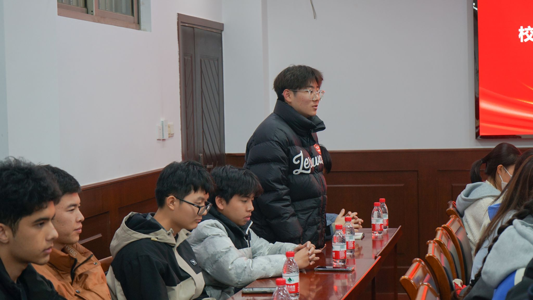 同学们纷纷发言,并围绕着学习、生活及未来规划进行了提问,丁校长耐心的一一解答,并对同学们如何有意义的度过大学时光,给出了“多学,多做,多练”的建议。他说到,作为大学生首先要多学,要着力提高自身的综合素质,现在的青年学子在建国百年之时都是社会的中流砥柱,要有强大的综合素质支撑社会主义现代化强国的发展;他指出,寻求素质能力的全面提升还需要积极投身实践,即多做,多做学科前沿的研究,多做学科交叉的尝试,多做丰富人生体验的探索;他强调,大学四年要学、要做,也要多练,在学习之余要多参与体育锻炼,要有强大的体魄支撑着青年学子奋斗前行;他补充到,大学的首个学期很关键,同学们要利用这段时间尽快从“他律”转变为“自律”,更快的适应大学生活。随后,丁校长拿出了自己的微信二维码,希望与同学们成为微信好友,也期待与同学们在不同的场合、不同的平台进行更多的交流。