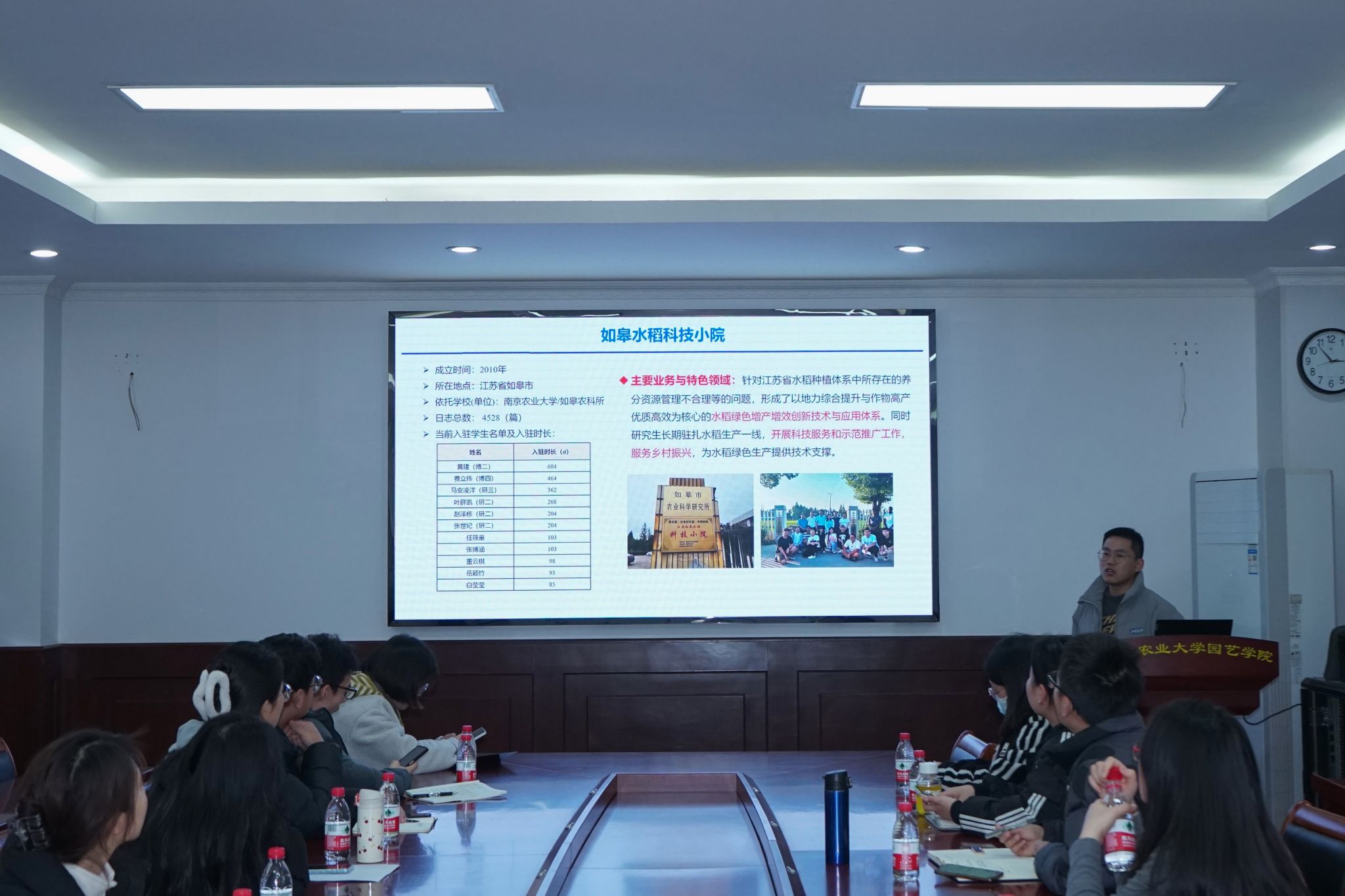 随后,费立伟博士以自己所在的如皋水稻科技小院为例,从项目背景、项目成果及应用价值、项目技术扩散、小院人才培养等方面展开讲解,与在场师生分享了他们科技小院建设经历和竞赛获奖经验。在分享末尾,他号召在座的同学们心系农业、农村、农民,以实际行动为乡村振兴贡献自身力量。