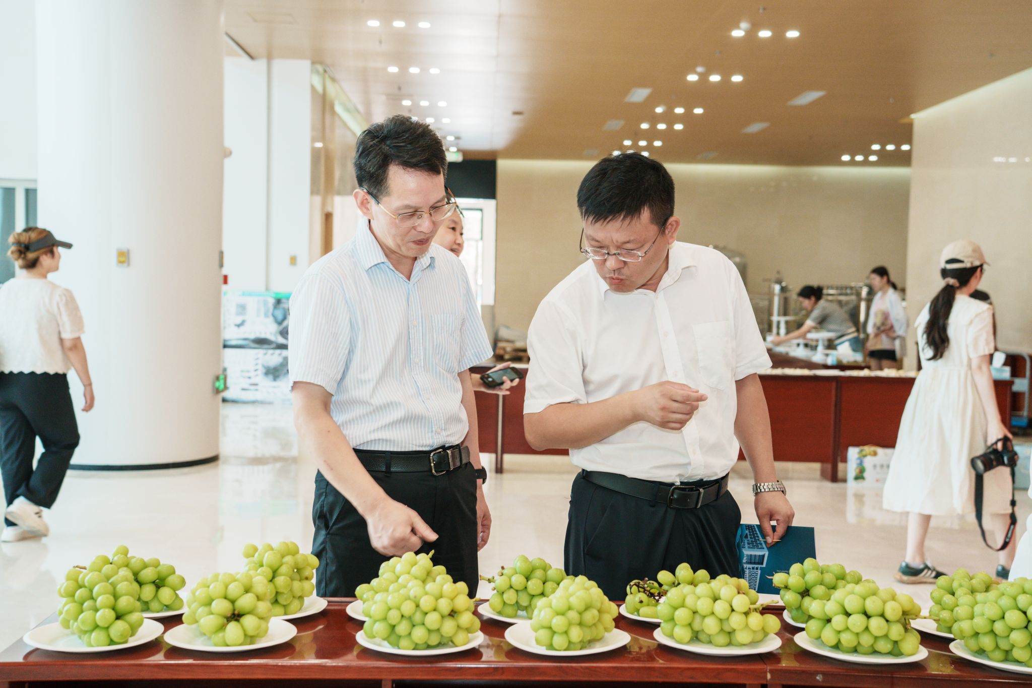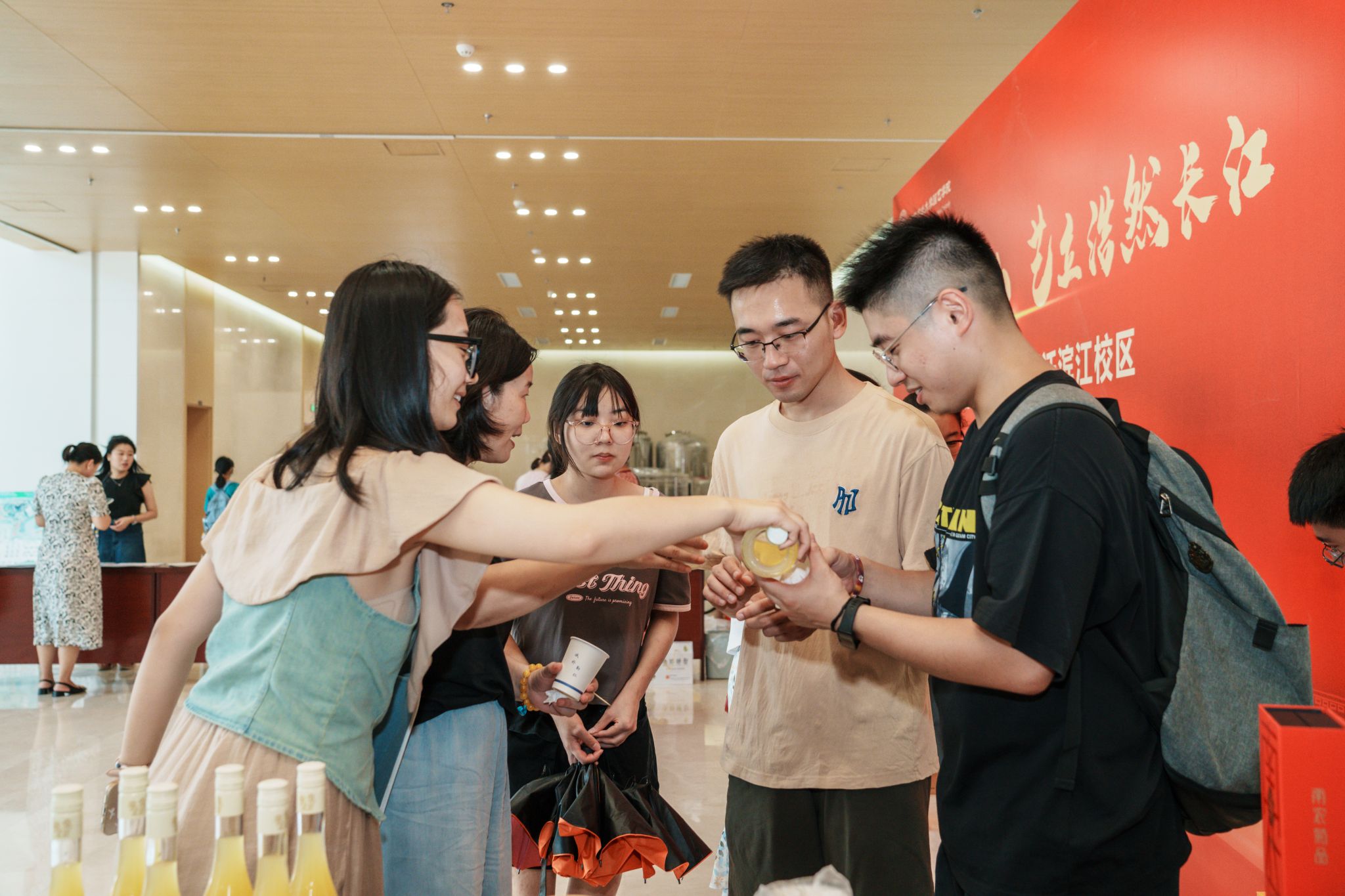 活动现场展示了各课题组的各类科研成果供师生们品鉴,鲜果翠梨、阳光玫瑰葡萄、菊花茶、苹果汁、生姜酒与各式茶点花样繁多,大批的新生和家长也被活动吸引前往现场,更直观的理解“园艺让生活更美好”的内涵。