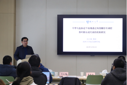 首先,来自扬州大学的冯立国教授做了题为《干旱与盐胁迫下玫瑰通过海藻糖信号调控香叶醇合成代谢的机制研究》的报告,报告揭示了非生物胁迫下RrbHLH105连接JA信号途径与海藻糖信号调控玫瑰花瓣香叶醇模式,为提高玫瑰抗逆性以及花朵品质调控机制的完善有着重要意义。