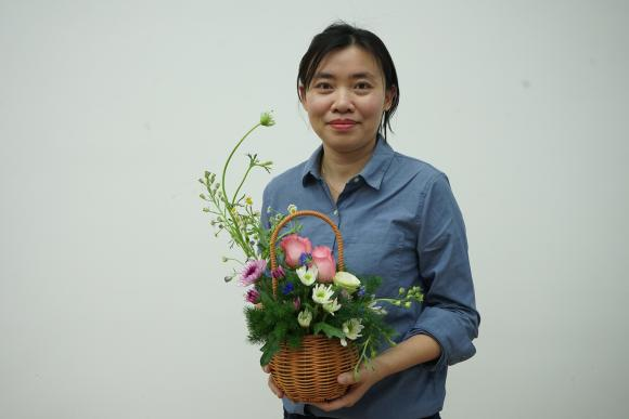全体女性教职工节日快乐,其后从插花技艺中比例与群组、色彩与焦点、均衡与动势三块内容展开讲解,由点及面向在场老师讲解插花中的审美与技巧,最后现场实操教学,一支又一支的花草素材在手中交叠错落,生机盎然又清爽养眼的组合在小小花篮中。