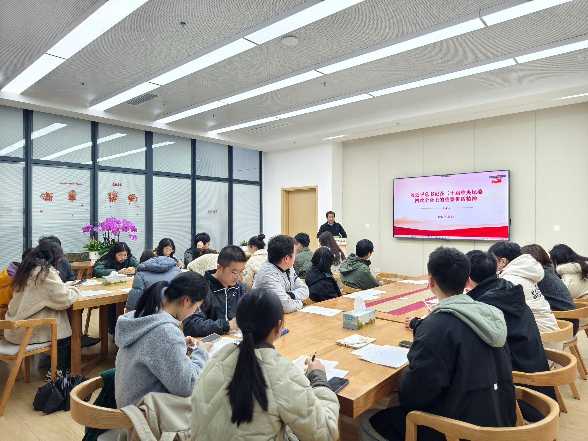 王鹏书记带领全体党员共同学习了习近平总书记在二十届中央纪委四次全会上的重要讲话精神以及教育强国建设规划纲要。通过学习,党员们深刻认识到全面从严治党的重要性,以及在教育强国建设中党员应肩负的责任和使命,努力为推动教育现代化、建设教育强国贡献自己的力量。