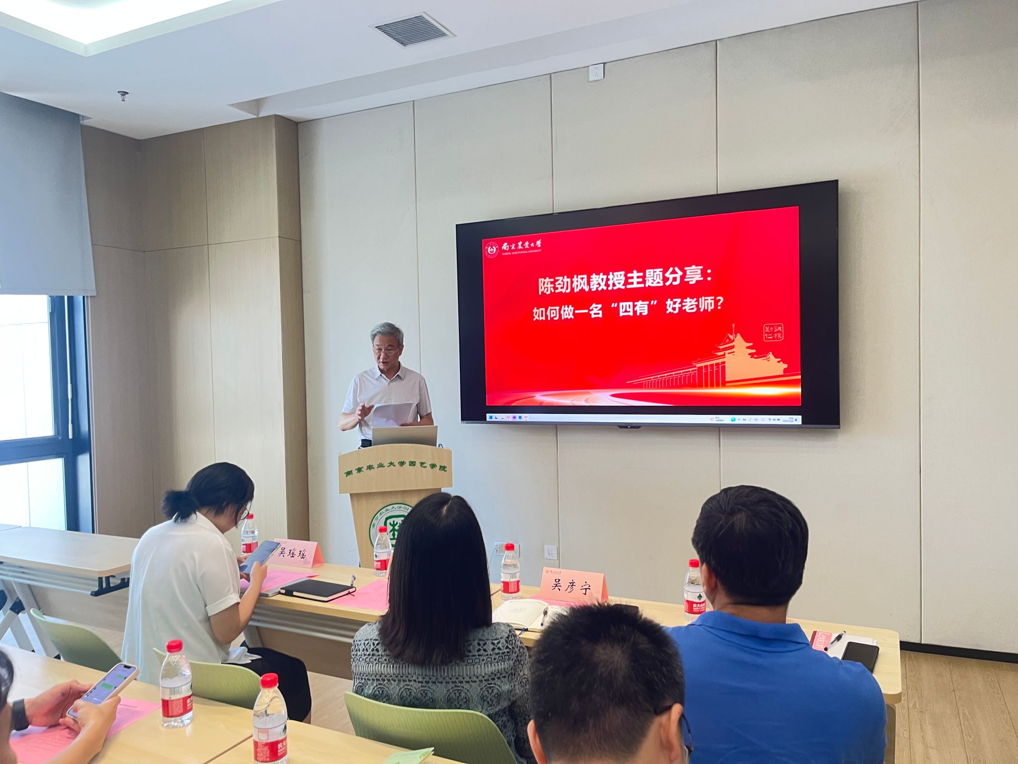 特邀陈劲枫教授、吴震教授、吴瑶瑶教授三位资深专家担任主讲嘉宾,为新教师们带来一场思想的盛宴。培训由院党委书记吴彦宁主持。