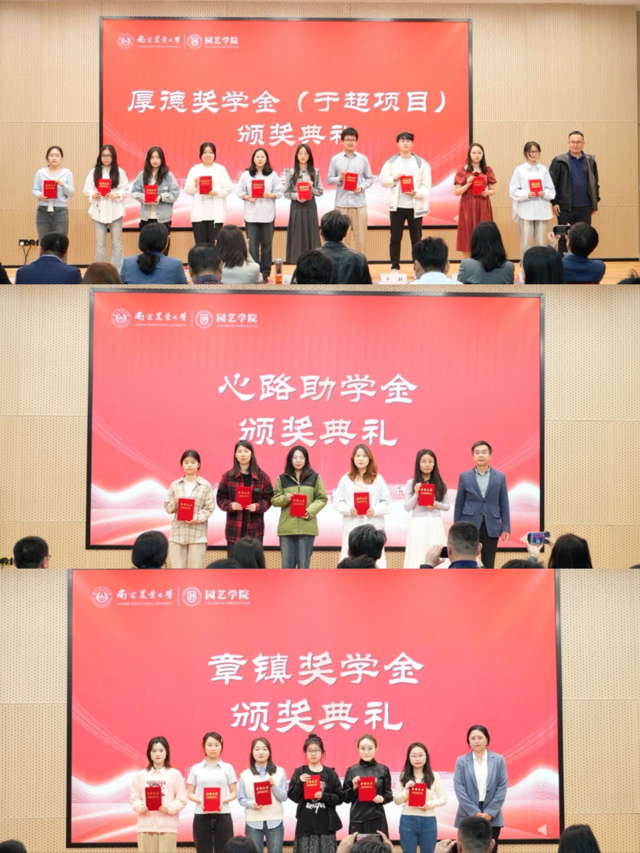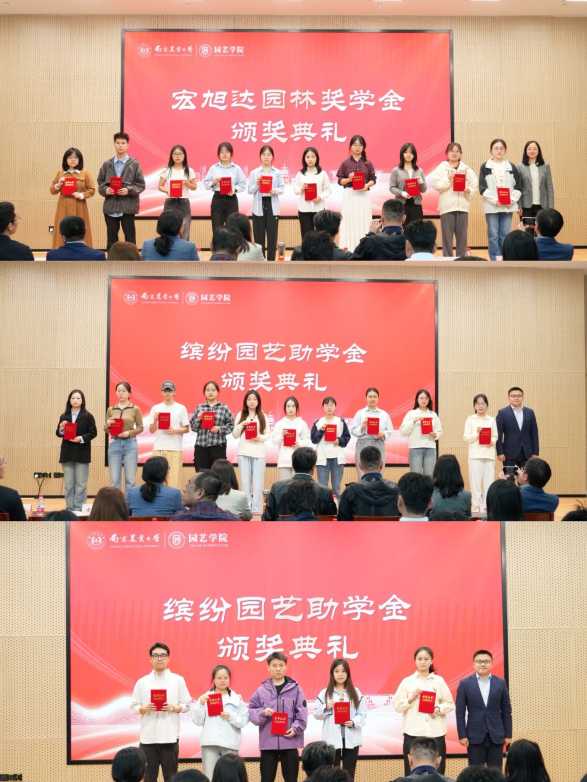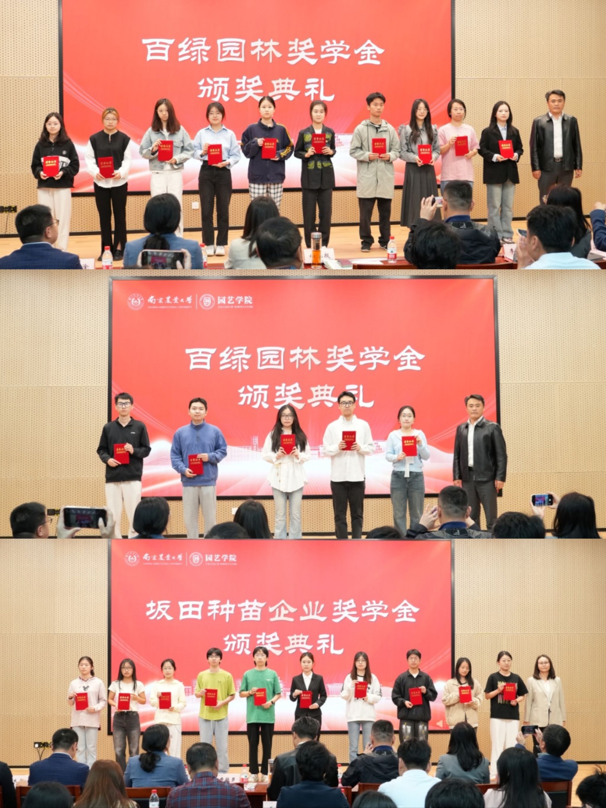 奖助学金颁奖典礼暨“园艺青年YOUNG”主题汇报会在滨江校区隆重举办。江苏百绿园林集团有限公司副总经理、党支部书记姚礼报、坂田种苗(苏州)有限公司总务管理部副部长曹敏亚、创想姜来(江苏) 农业科技有限公司总经理于超、章镇奖学金设奖家属代表章元、南京云几文化产业发展有限公司执行董事王蕾、南京药业股份有限公司总经理张文、金埔园林股份有限公司副总裁杨晓波、南京拙景园林规划工程有限公司人事经理李慧娟、江苏百绿园林集团有限公司高级人力资源专业师章星星,校学生工作处副处长李阿特、校团委副书记方淦,六合彩网