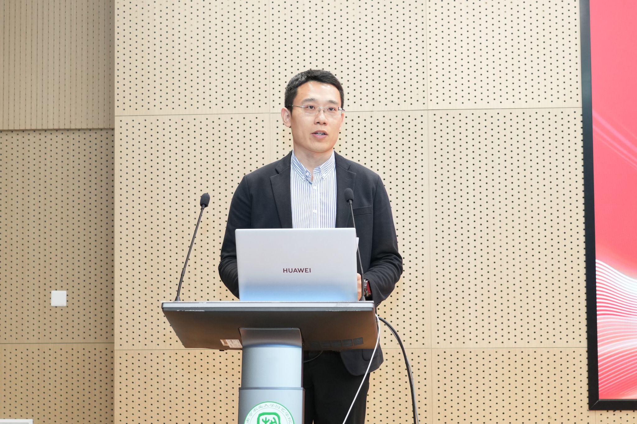 王冠华作为江苏省优秀班集体的代表,讲述了班级的“风景园林”的集体担当,诠释榜样集体对专业使命的躬身践行;赵嘉仪作为志愿服务类学生代表,通过志愿服务故事传递青年公益行动力与社会责任感,展现新时代大学生扎根社会的温度;匡嘉苗作为社会实践类学生代表,用墙绘展开了她与社会实践的故事,印证社会实践是青年洞察社会、服务社会的窗口;刘丁毅作为创新创业类学生代表,他所处的“贵梨不甜”项目一直走在促进梨产业发展的路上,凸显青年学子用创新驱动传统农业升级的担当;陈鹏作为学术科研类学生代表,分享了他的科研成果,体现了严谨求真的科研精神和“把论文写在大地上”的务实追求;秦个个通过“屋顶上有什么”的新颖视角,展现了从技术攻坚到人文关怀、从产业赋能到美学表达的园艺榜样形象。他们通过回顾成长历程,用自身的成长故事鼓励更多同学坚定理想信念,明确自身方向,书写青春华章,勇担时代使命。