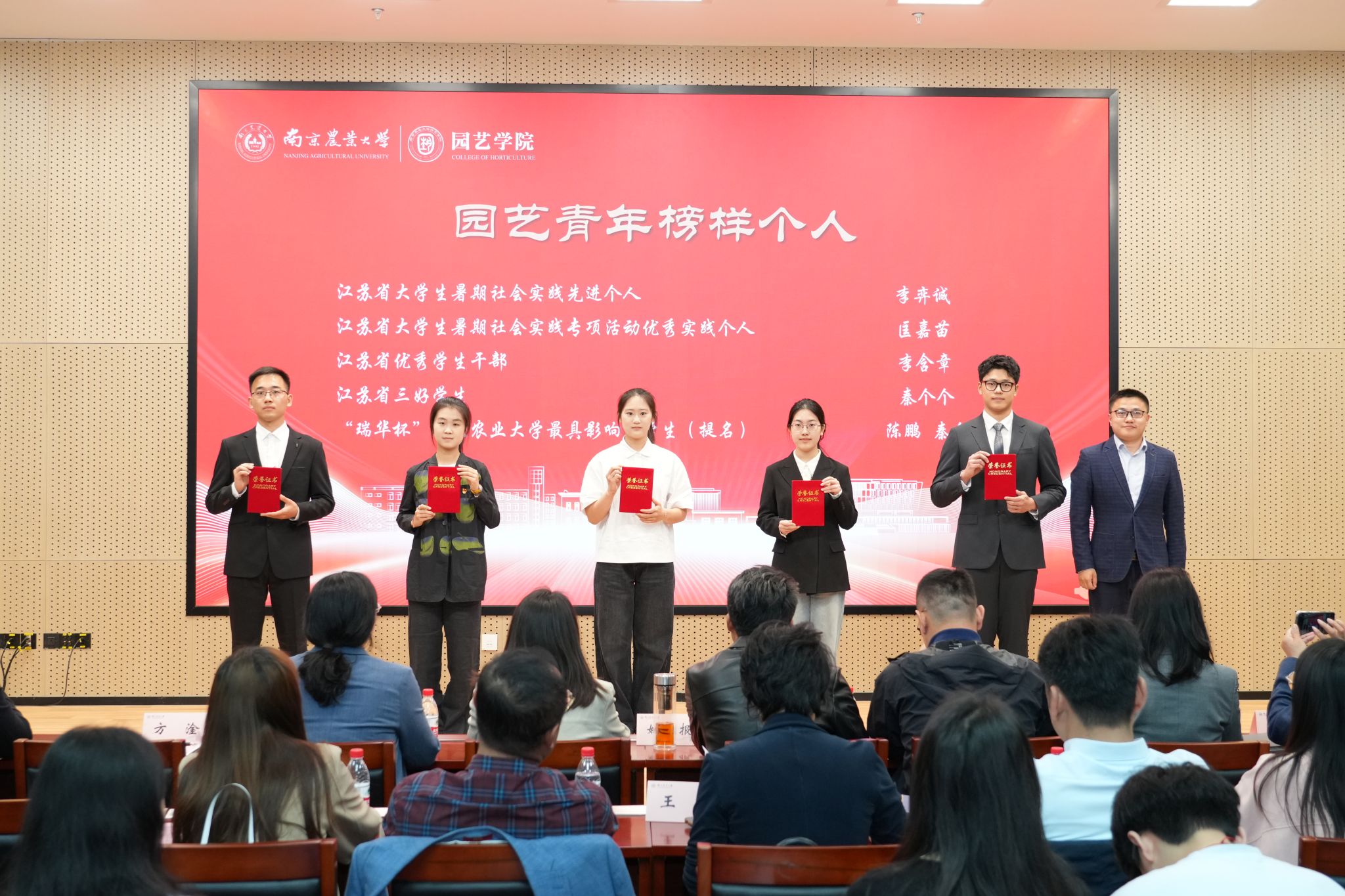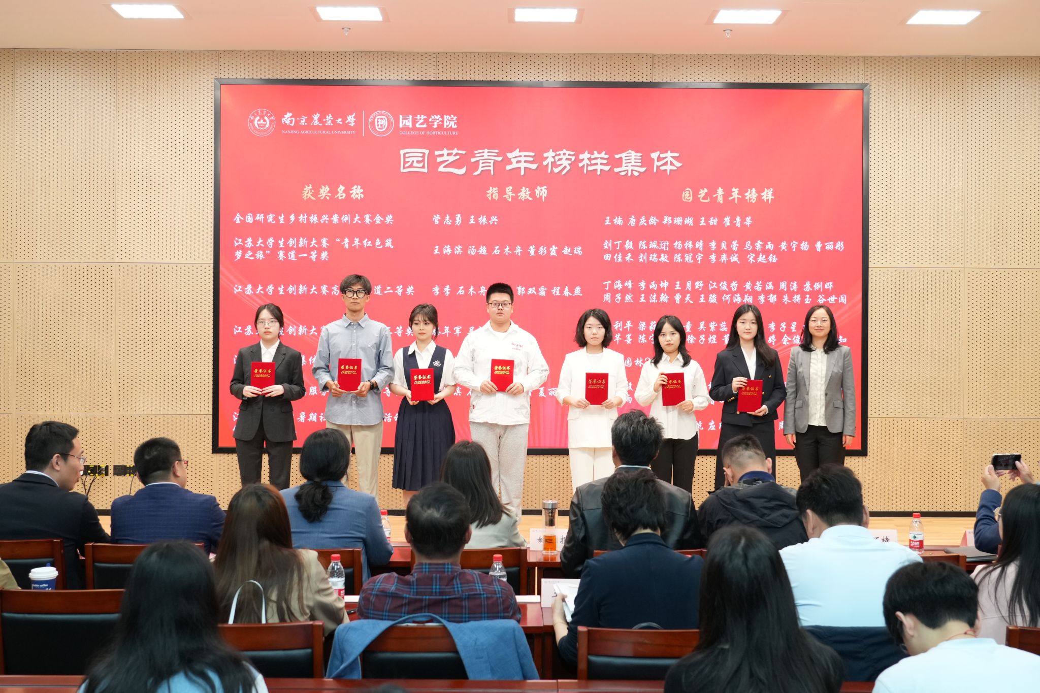 会议期间,大会为获百绿园林奖学金、坂田种苗企业奖学金、厚德奖学金(于超项目)、宏旭达园林奖学金、缤纷园艺助学金、章镇奖学金、心路助学金的70余名获奖同学颁发获奖证书,并为全国研究生乡村振兴案例大赛金奖团队、江苏大学生创新大赛等共计12项省级以上奖项获奖学生集体及个人颁发“园艺青年榜样集体”、“园艺青年榜样个人”证书。