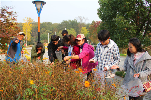 收集菊花和格桑花的种子其实并不是一件困难的事,加上下午的阳光非常好,金色的阳光洒在一片金黄的菊花丛中,是给予秋后最温暖的景色。大队一行人在菊花地中穿行,闻着淡淡菊花香气,一路说说笑笑.反而觉得收集种子是一件十分有趣的事情。