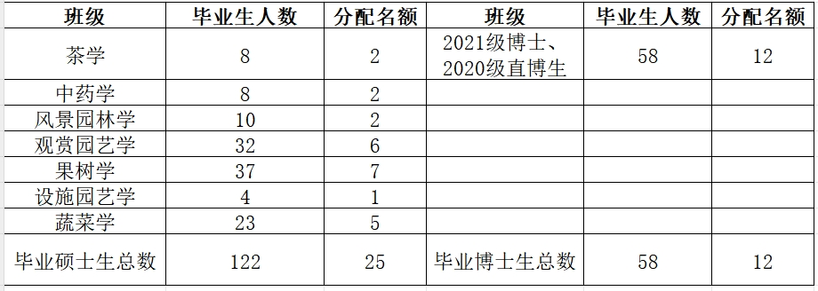 (按应届毕业研究生人数20%的比例计算,四舍五入),详见下表。