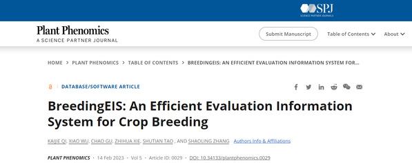 大学题为“BreedingEIS: an efficient evaluation information system for crop breeding”的文章,该研究基于当前流行的计算机、智能手机和近场通信(NFC)技术,开发了一个免费、安全的新育种信息平台(BreedingEIS,“云上后稷”),详细介绍了该育种系统的基本原理、设计、部署和使用方法,并指出了该育种系统的未来发展计划。