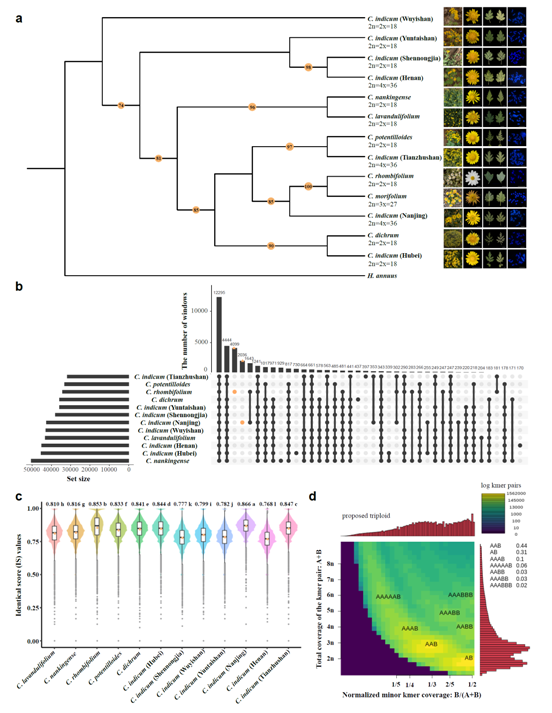 大学陈发棣团队在Nature Communications上发表了题为Analyses of a chromosome-scale genome assembly reveal the origin and evolution of cultivated chrysanthemum的研究成果。该研究破译了六倍体栽培菊花基因组,报道了国际上首个节段异源多倍体基因组(segmental allopolyploid),深入探究了栽培菊花的起源和育种历史,也为下一步解析菊花重要园艺性状(花型、花色、株型、抗逆等)形成的分子机制和定向育种奠定了基础。