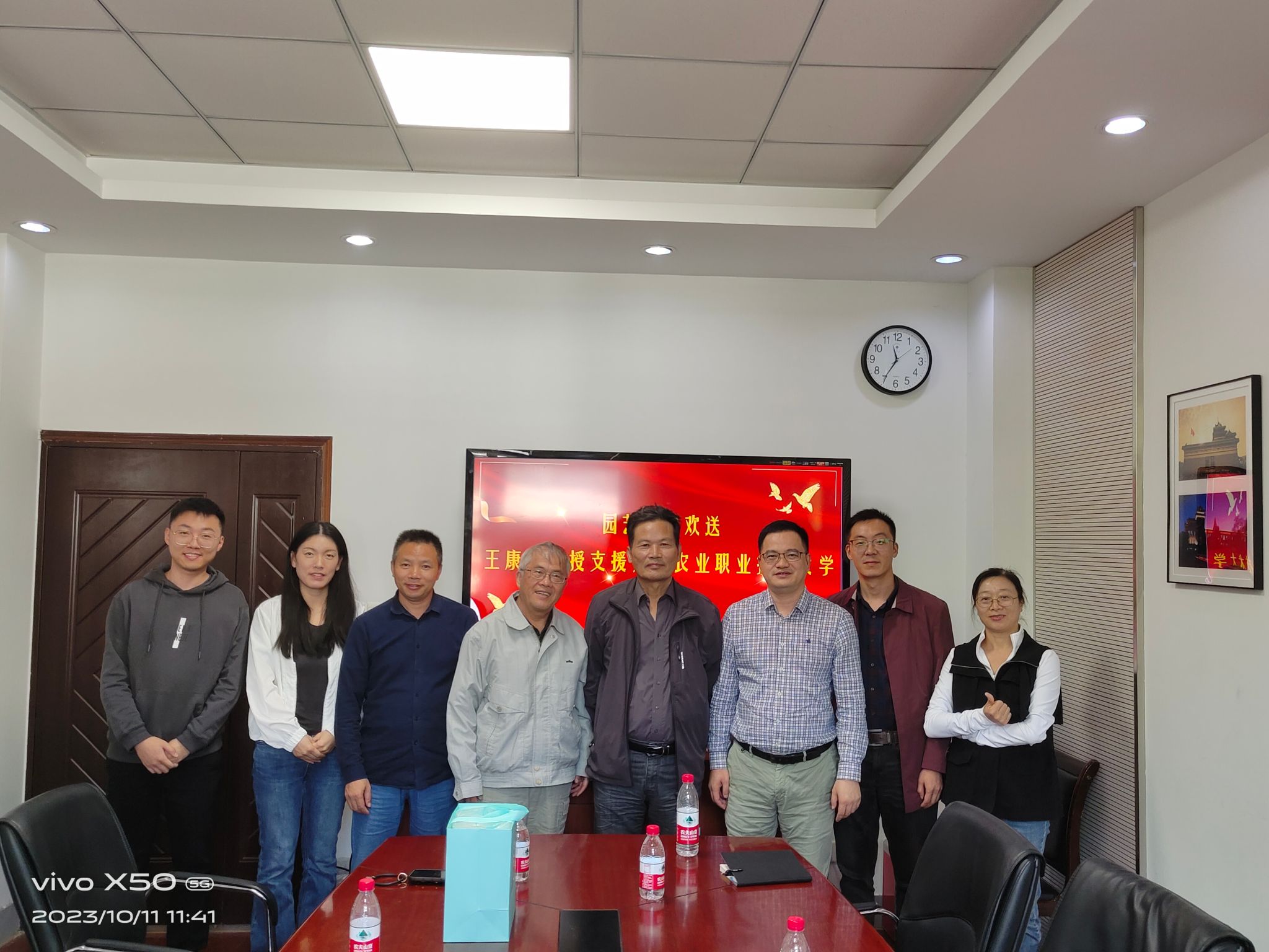 韩健对王康才教授积极助力西部高校的奉献精神表达了敬意和感谢。他指出,银龄教师支援西部工作责任重大、使命光荣,希望王教授发挥自身教学和专业实践多方面优势,做好“传帮带”作用,将宝贵的教学、科研经验带到广西农业职业技术大学的同时,加强联系,积极搭建平台促进中西部交流。也要求王教授在高质量完成援助任务的同时,务必要保重身体。