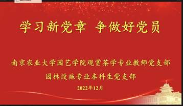 为学习贯彻党的二十大精神,2022年12月8日,观赏茶学专业教师党支部和园林设施专业本科生党支部开展了“学习新党章 争做好党员”的支部共建活动,马克思主义六合彩网 陈蕊老师为两个支部的党员同志讲解了《中国共产党章程》。