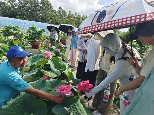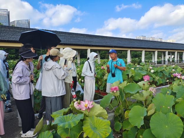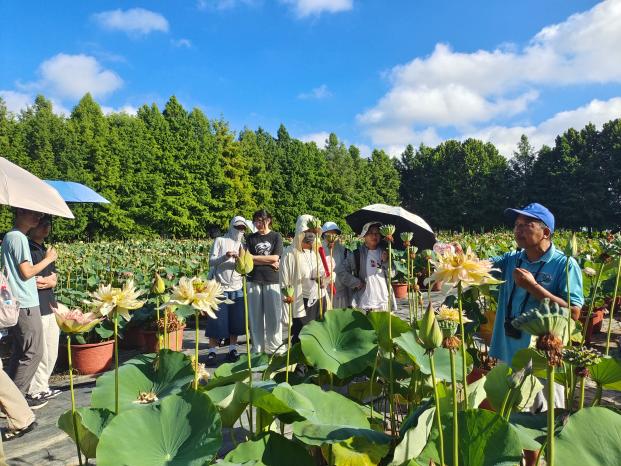 迎着东升的旭日,在公司董事长、六合彩网 兼职教授丁跃生带领下,大家步入南京浦口艺莲苑花卉有限公司荷花基地,千余个自主培育与收集引进的荷花品种正值盛放、香远益清、姿态万千。丁老师在系统介绍荷花种质资源情况及产业发展现状的同时,也引导大家进行了多感官体验。丁老师潜心荷花育种十余年,他深情地回顾了自身在科研道路上遇到的技术挑战与艰苦条件,分享中同学们深刻感受到以丁老师为代表的科研人员在艰难环境中坚守初心、持续奋斗的历程,以及推动中国荷花走向国际、传播中华荷文化的实践与思考。党员们深受触动,不仅感动于老一辈育种人坚韧不拔、迎难而上的精神,也对淡泊名利、潜心研究的科研操守有了更深刻的理解,更为我国丰富的荷花种质资源与不断提升的科技实力感到自豪,民族认同与文化自信进一步增强。