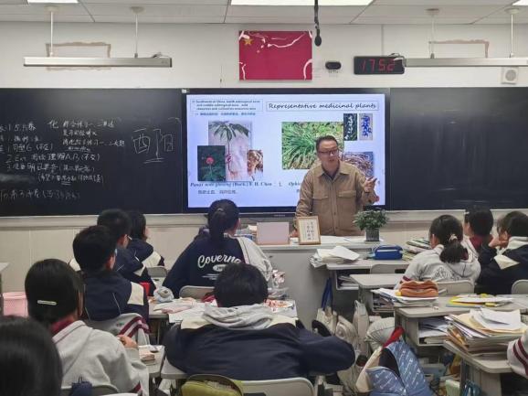 中药教师党支部汪涛、朱再标、邹庆军等老师带头践行“党建促科普”的理念,通过多次线下课程,向南京一中中草药社团同学系统介绍各类中药在我国的分布情况,生动讲解药用植物种植的智慧与现代应用,实践演示野生药用植物保护的专业技能,帮助高中学子构建中草药基础知识框架。